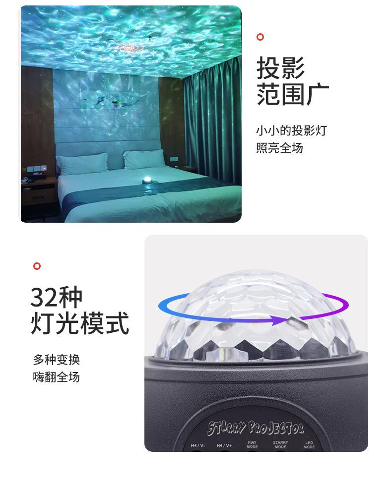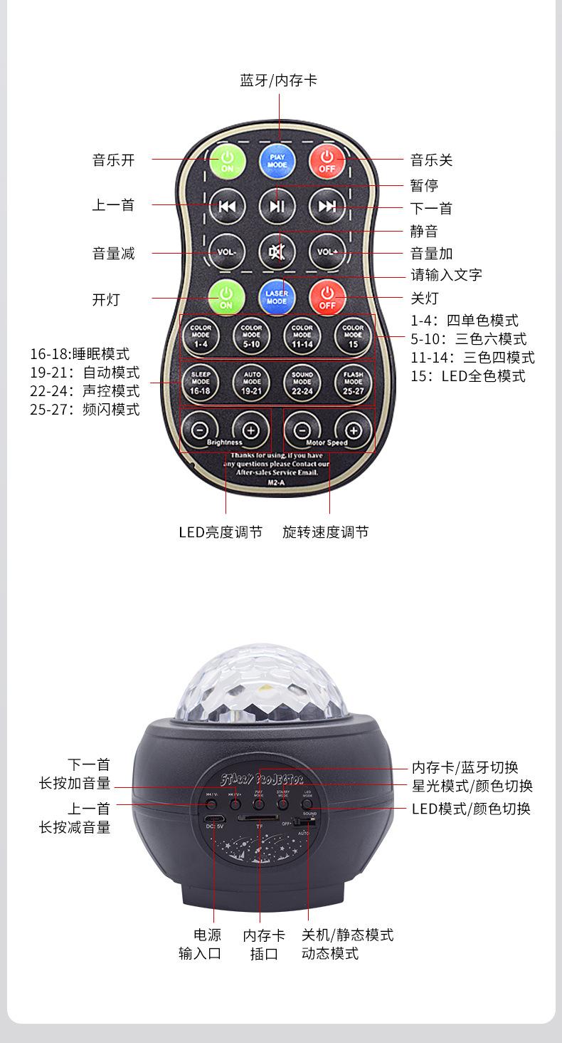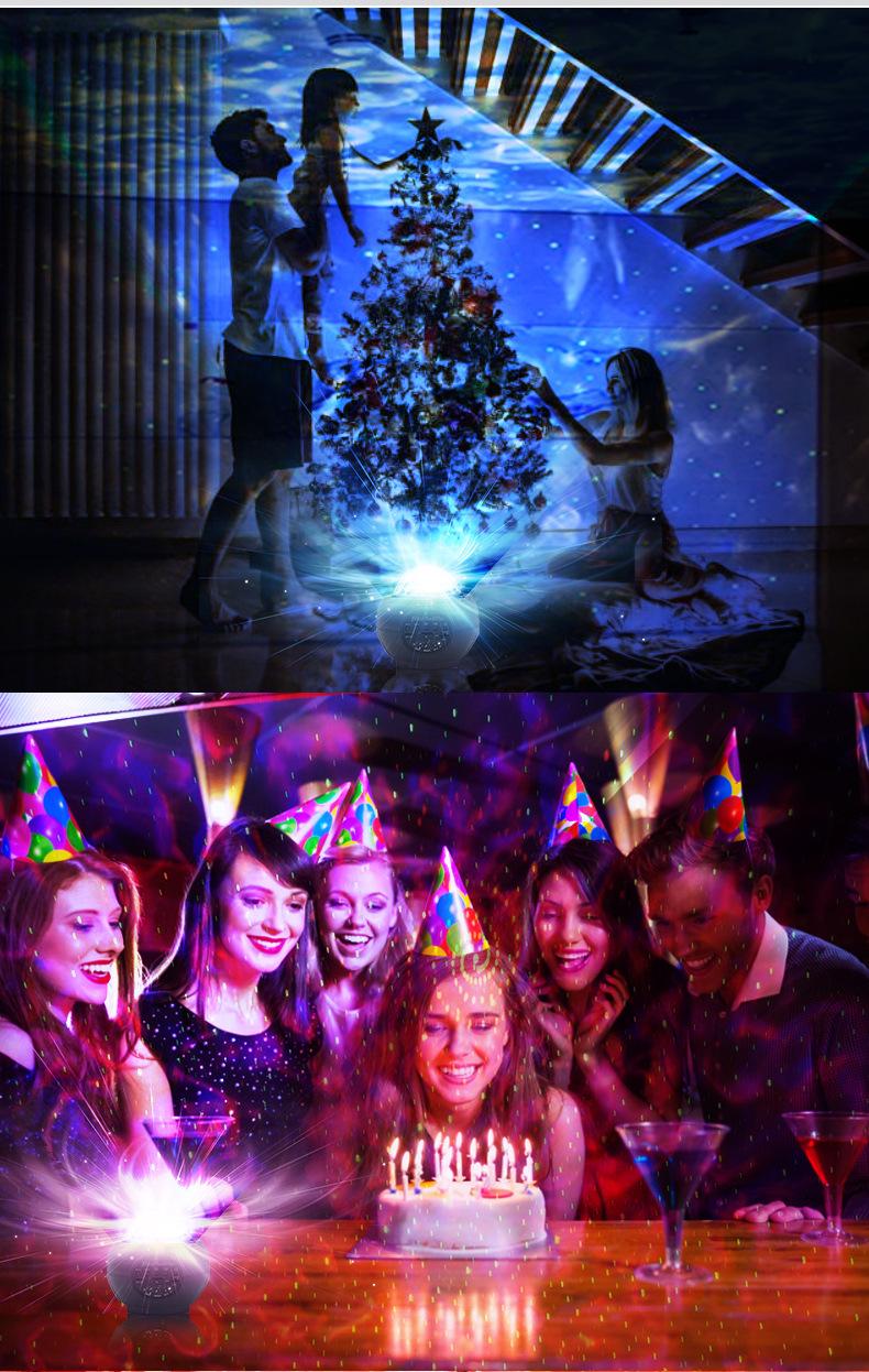Descripción del producto: Este producto combina luces de agua de cuatro colores y láseres rojo y verde. El patrón de agua tiene cuatro colores: rojo, blanco, azul y verde. El láser es rojo y verde. El control remoto permite ajustar el color, la velocidad, el modo, el modo Bluetooth, el control único del patrón, el control único del láser, el brillo, el control de música, el control de sonido, la selección de modo, etc. Se puede conectar cualquier teléfono móvil u otro dispositivo con Bluetooth activado sin necesidad de verificación.