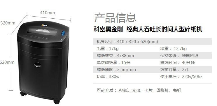 Cometa (cometa) Destructora de documentos de oficina Black King Kong de gran capacidad y larga duración