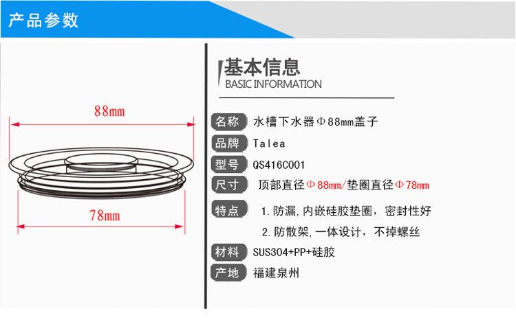 Tapón de Fregadero de Cocina Tianli Lavabo Cubierta de Acero Inoxidable Tapón de Piscina Cubierta de Alcantarilla QS416