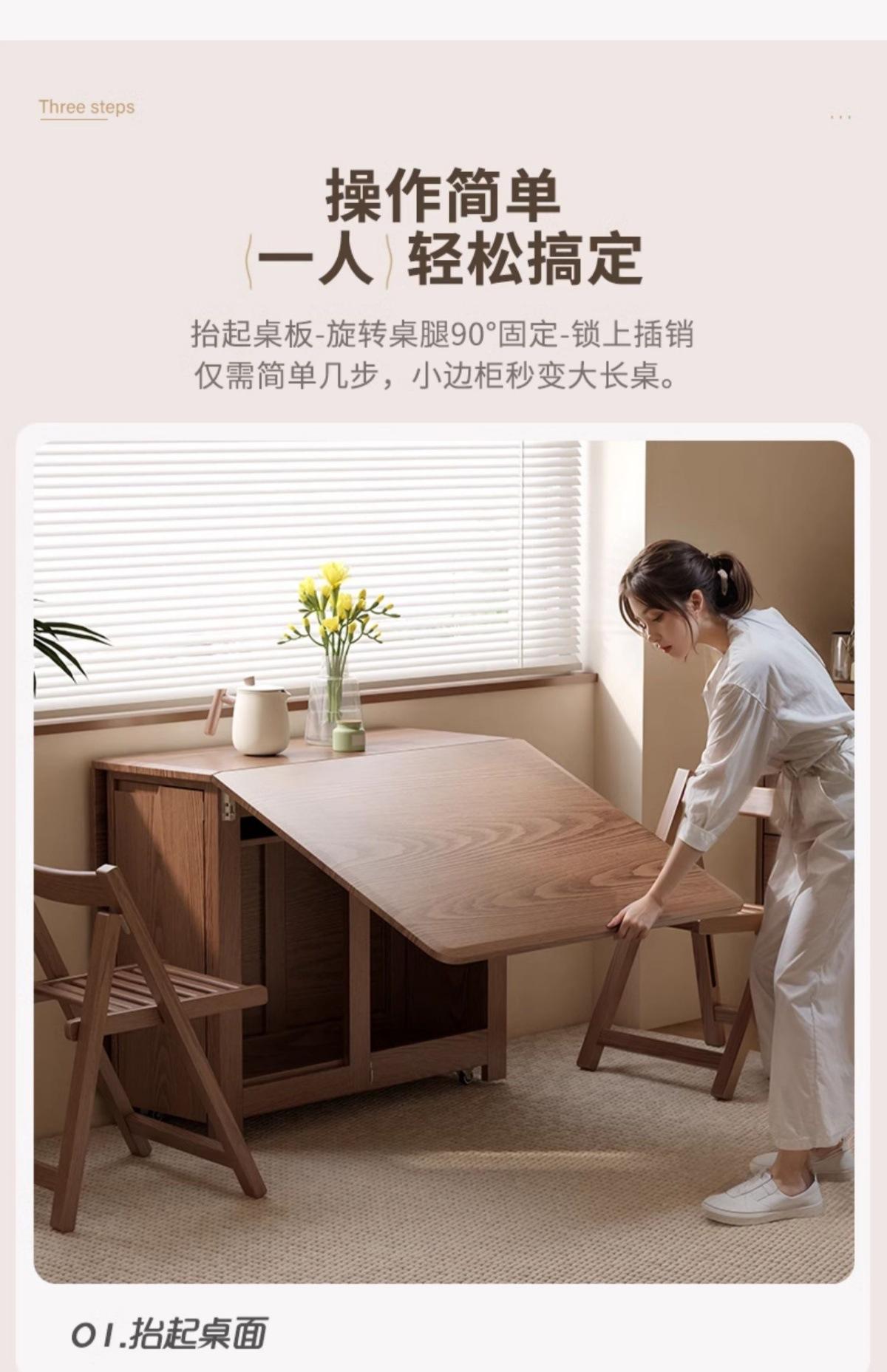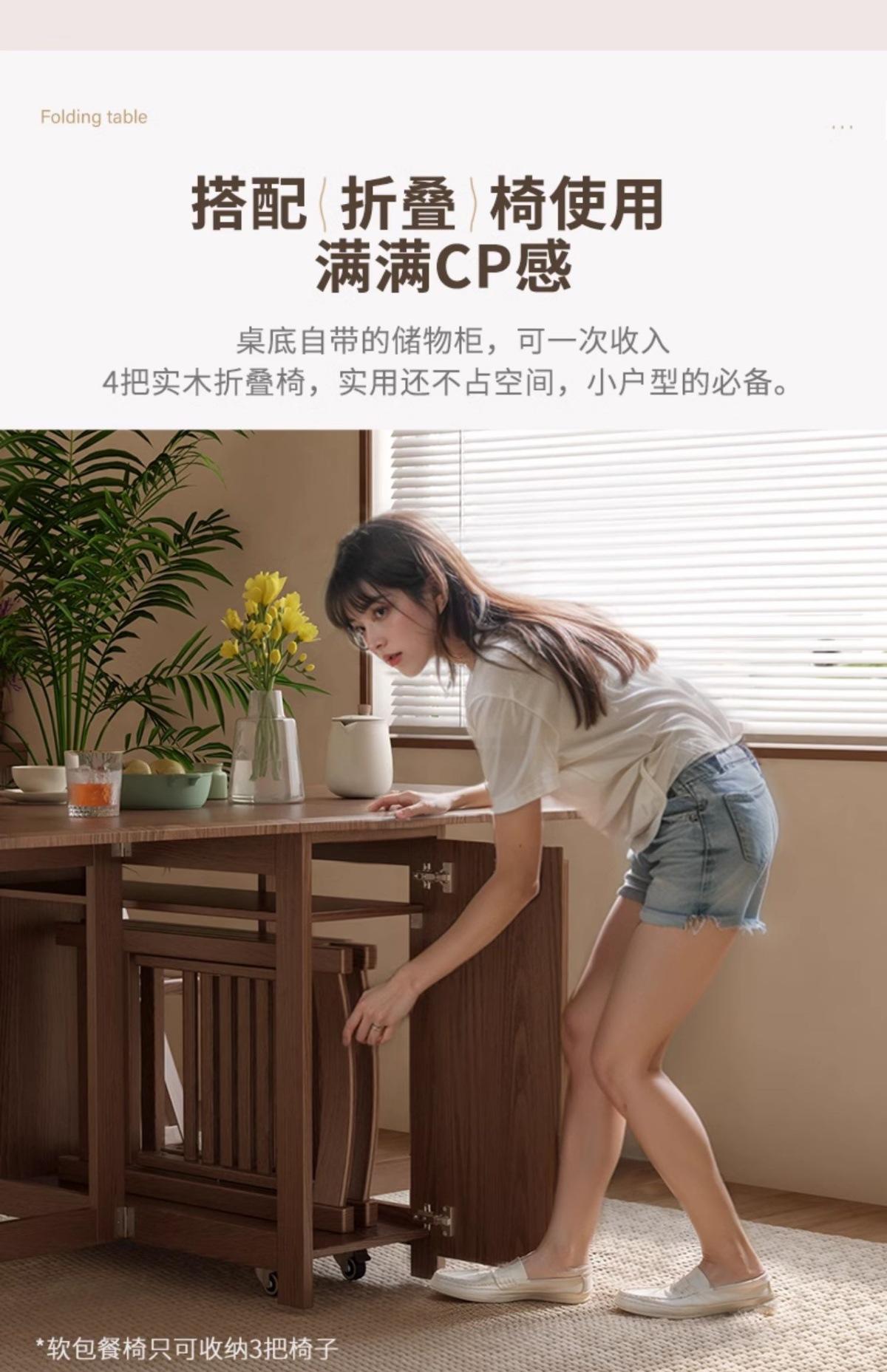 Mesa de comedor plegable de madera maciza para el hogar, mesa de comedor para apartamentos pequeños, mesa de comedor rectangular y silla, mesa de comedor plegable