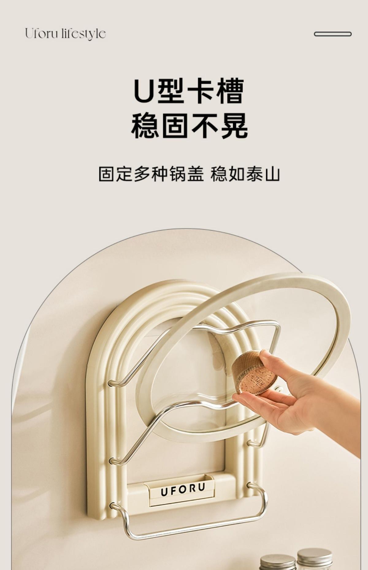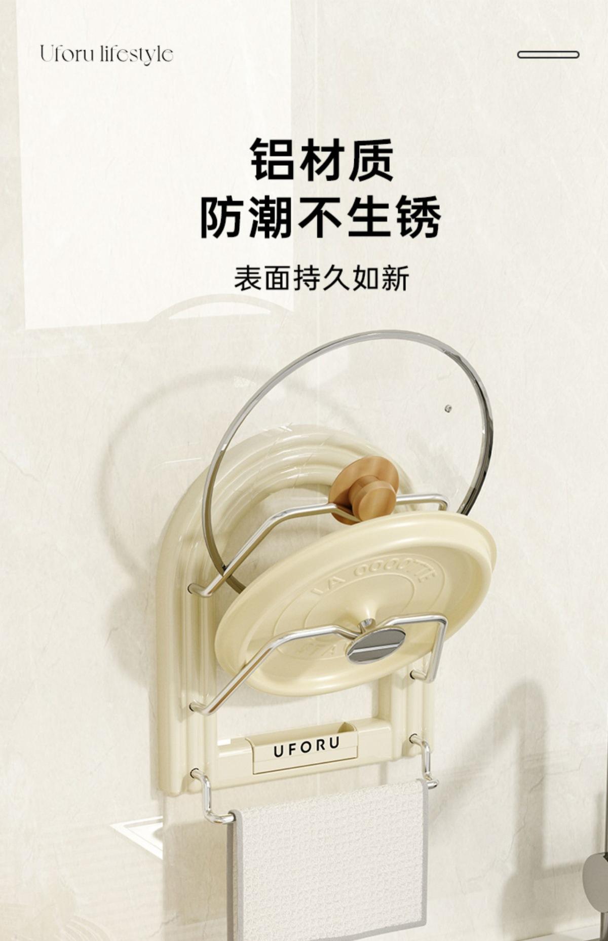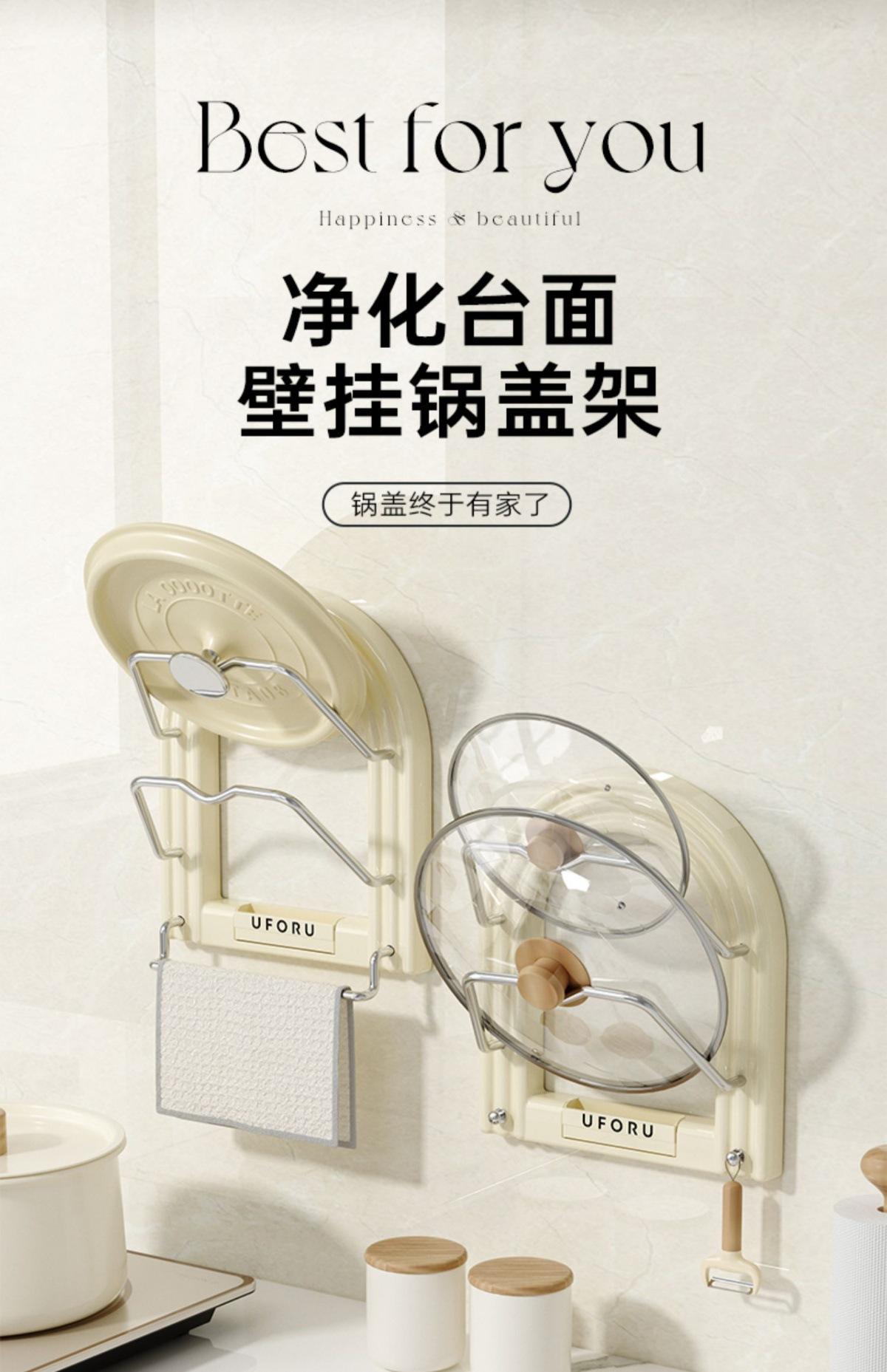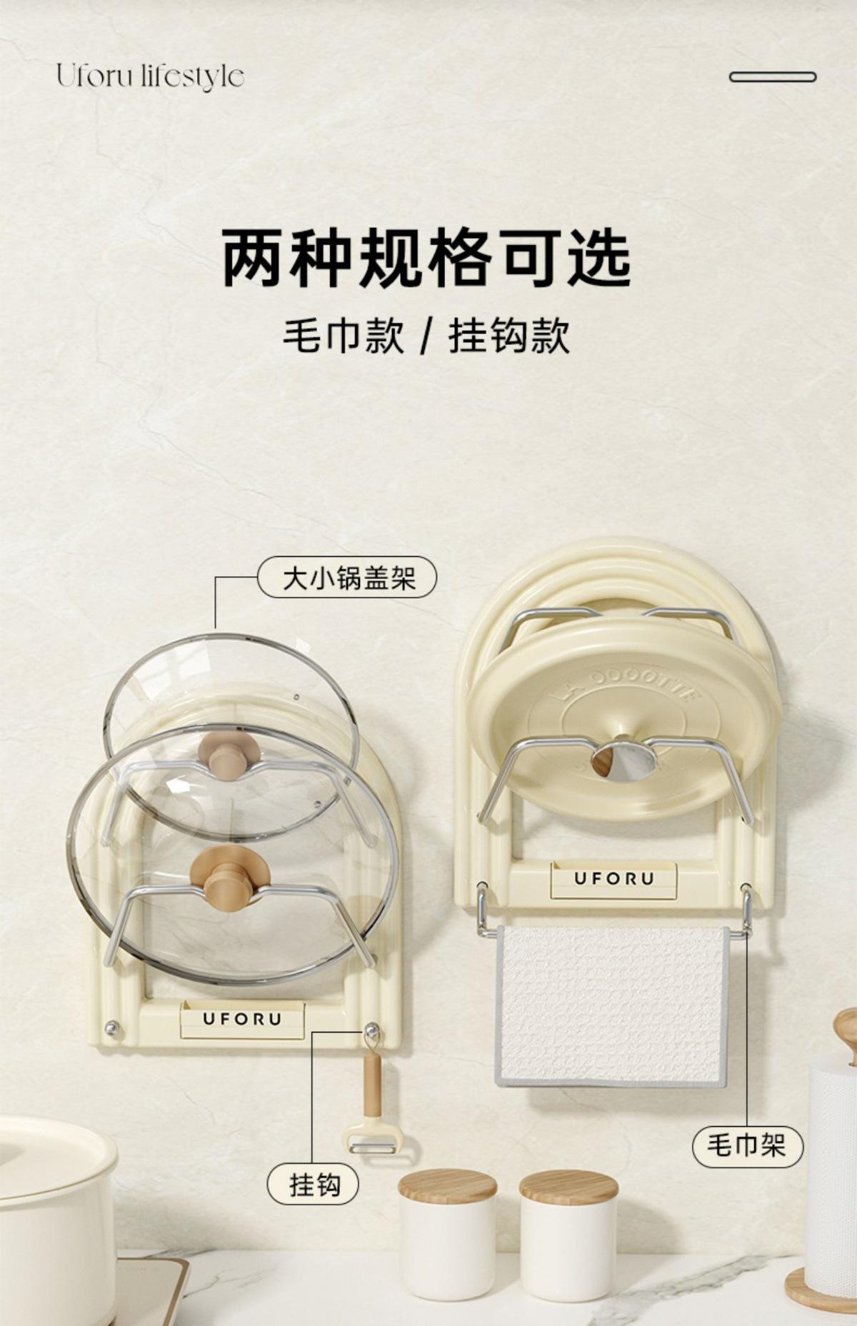 Pot lid holder - towel rack (cream white) [no punching required - free traceless sticker + screwdriver]
