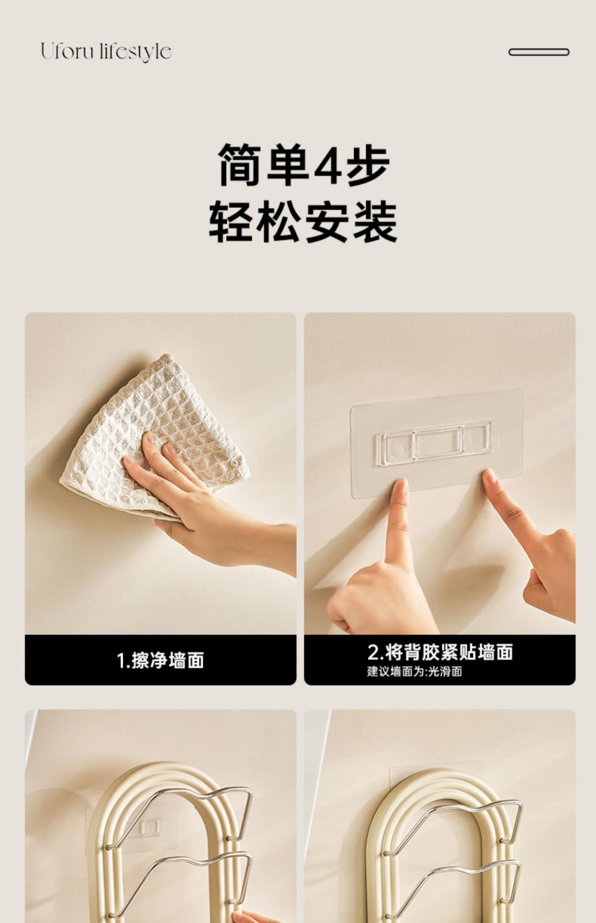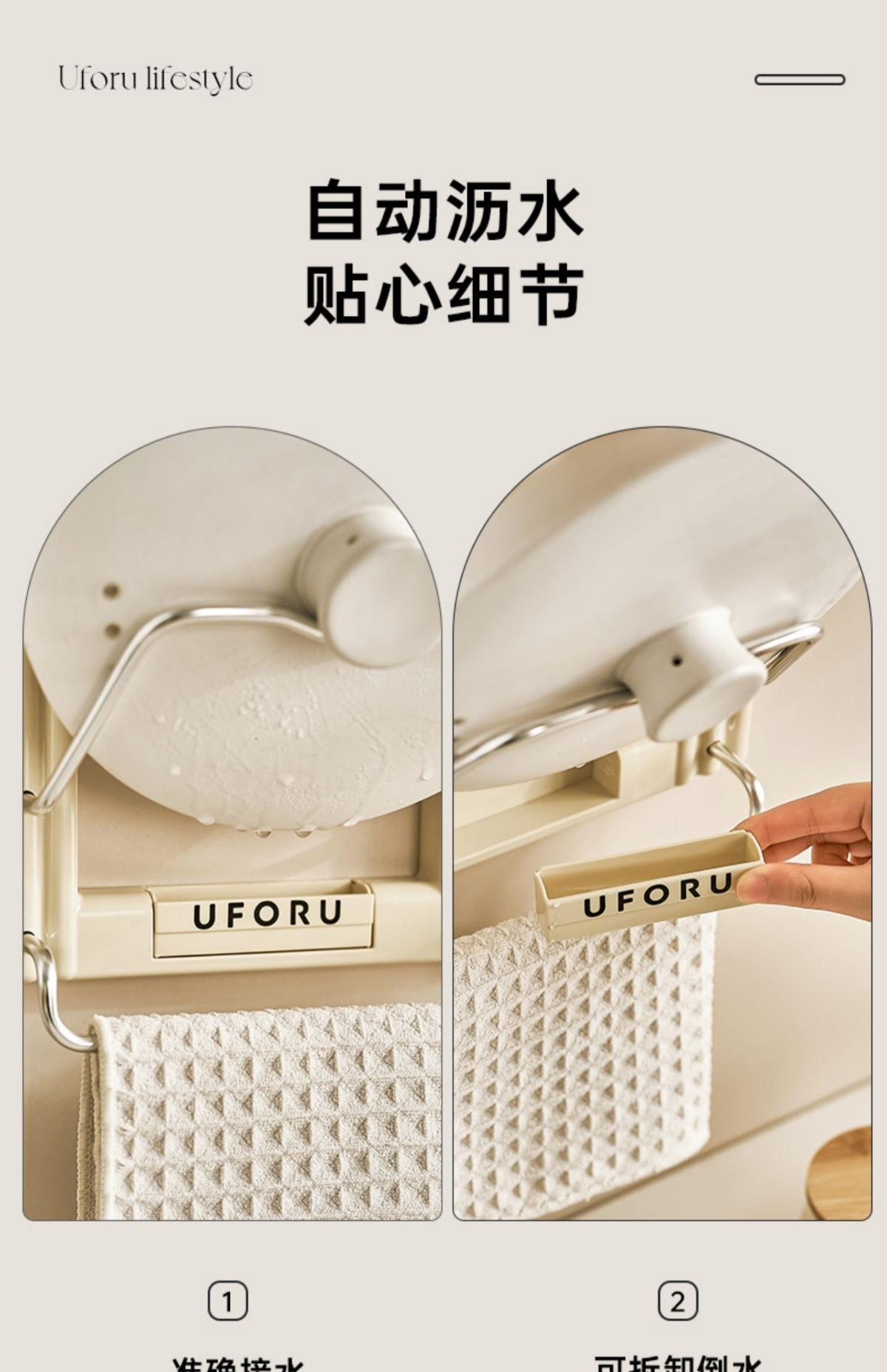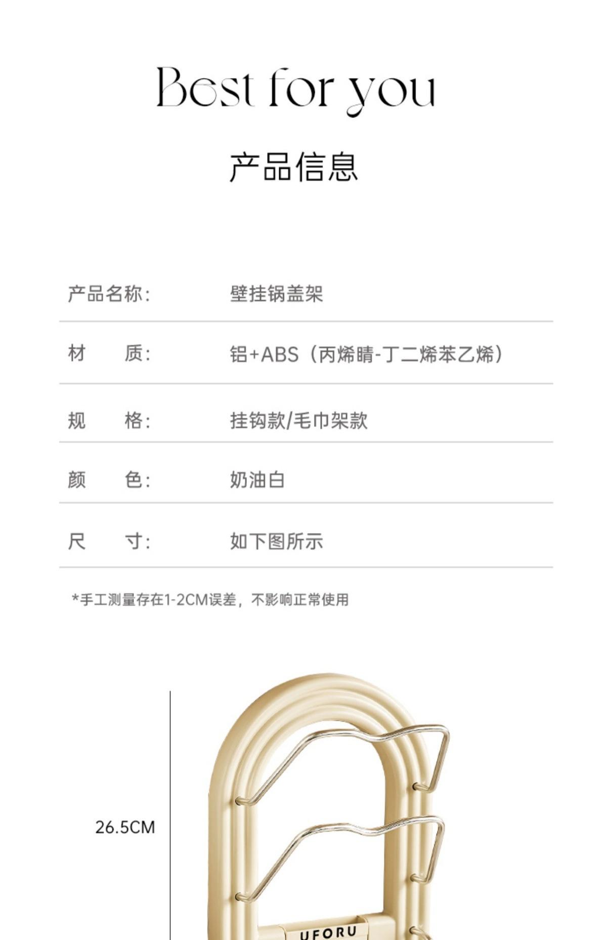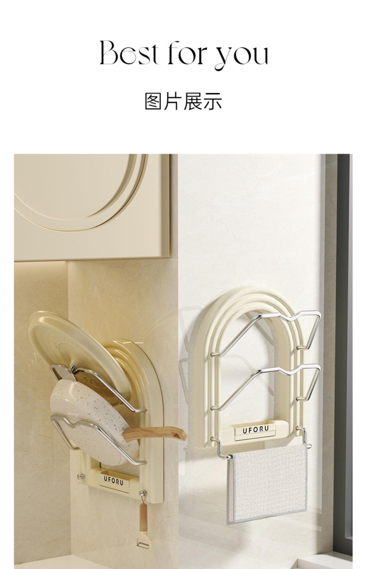 Pot lid holder - towel rack (cream white) [no punching required - free traceless sticker + screwdriver]
