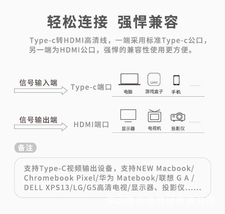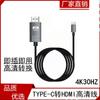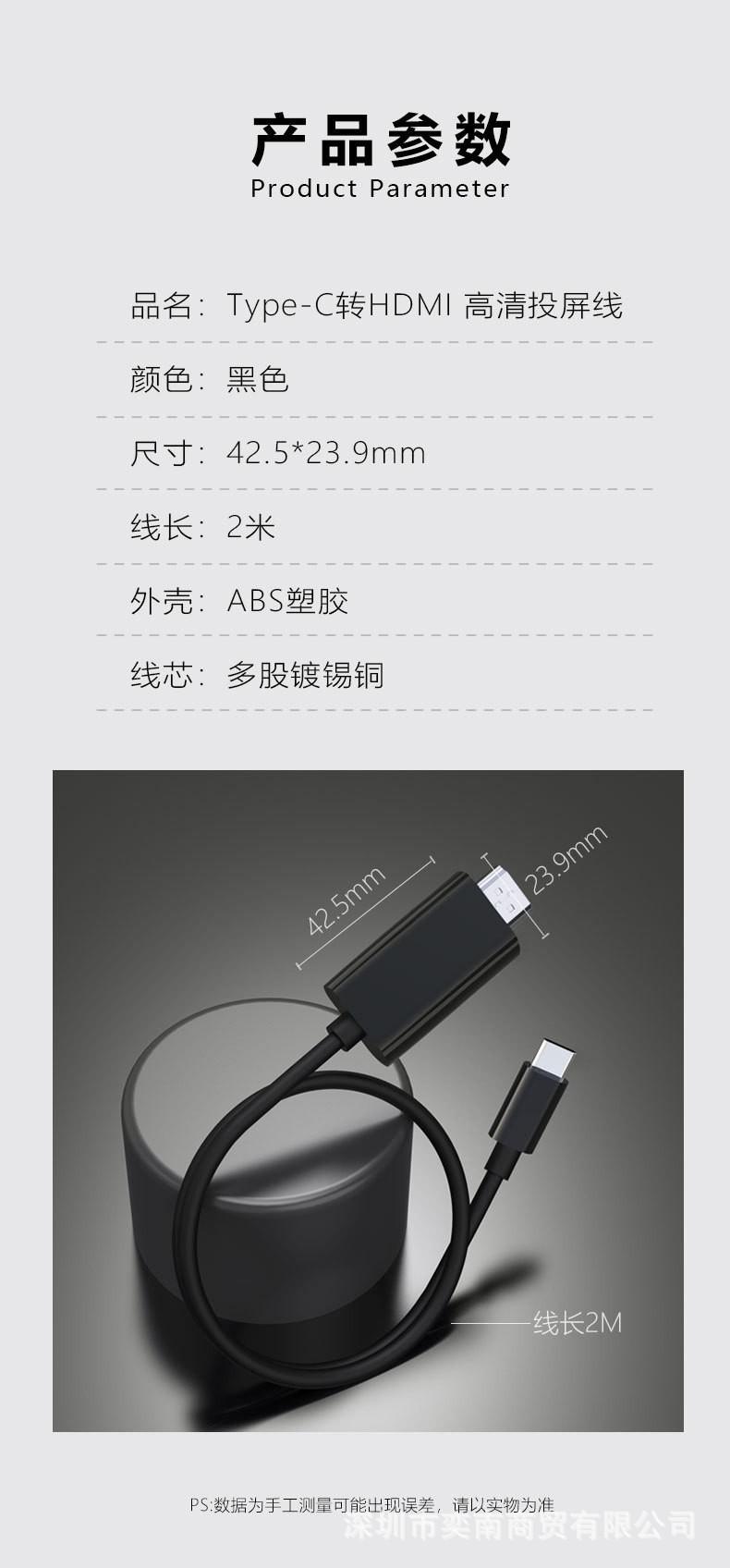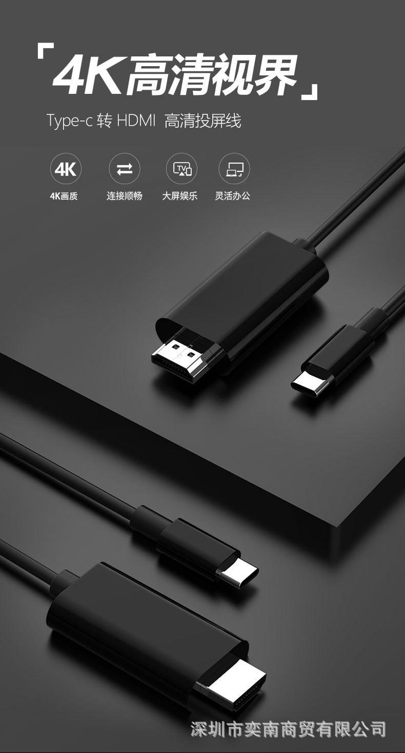 Convertidor USB-C a HDMI Conexión de Teléfono Móvil Conexión de TV 1.8M Conexión de Video HD Cable de Pantalla Negro