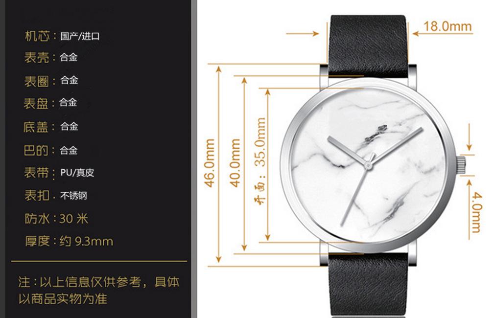 Comercio exterior nuevo mármol literal cinturón reloj estudiantes simple moda casual cuero amantes reloj fabricantes mayoreo