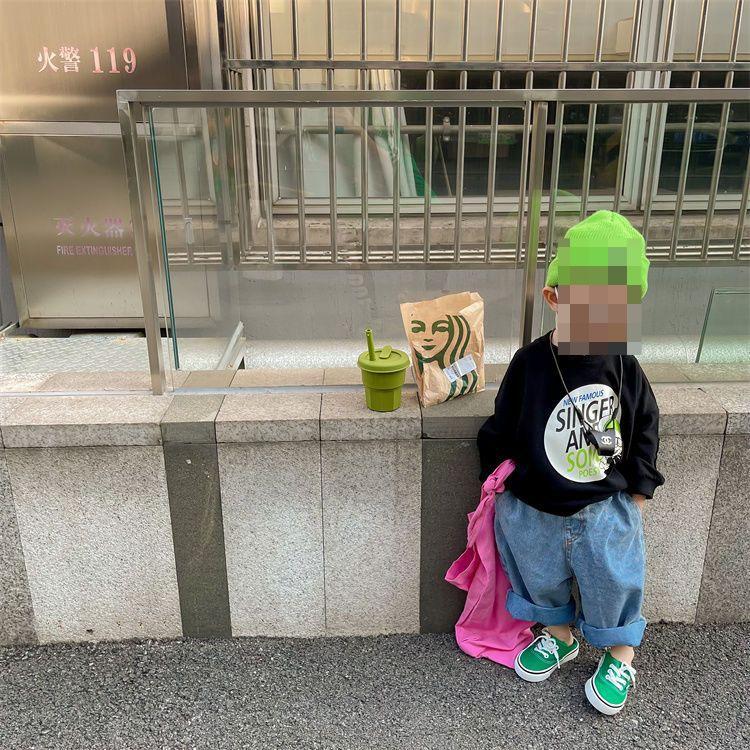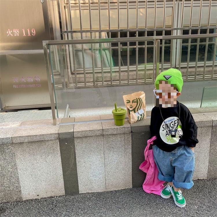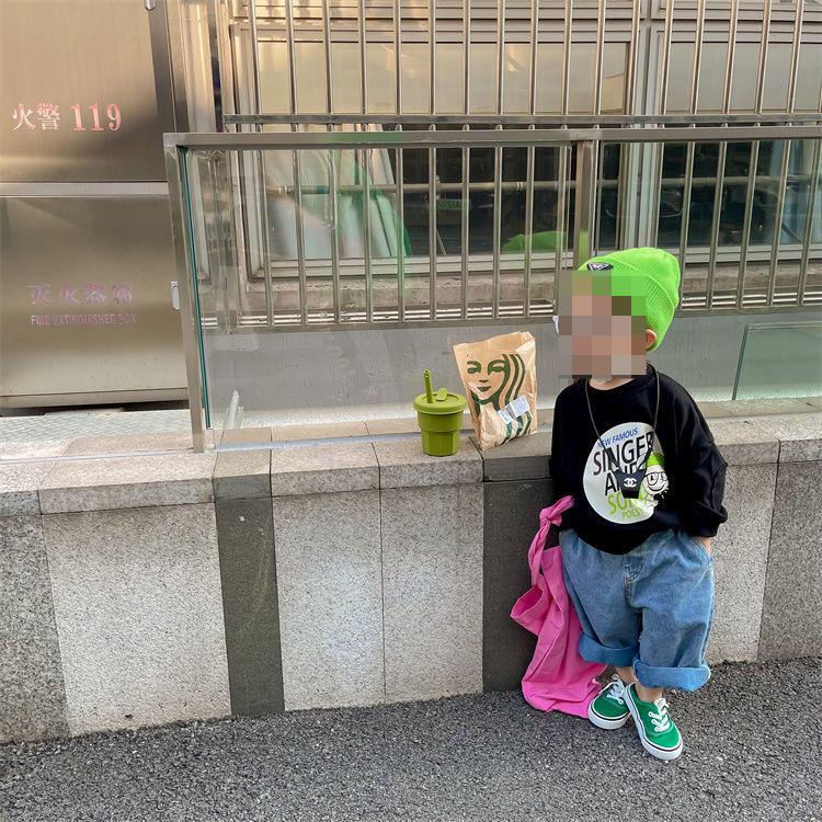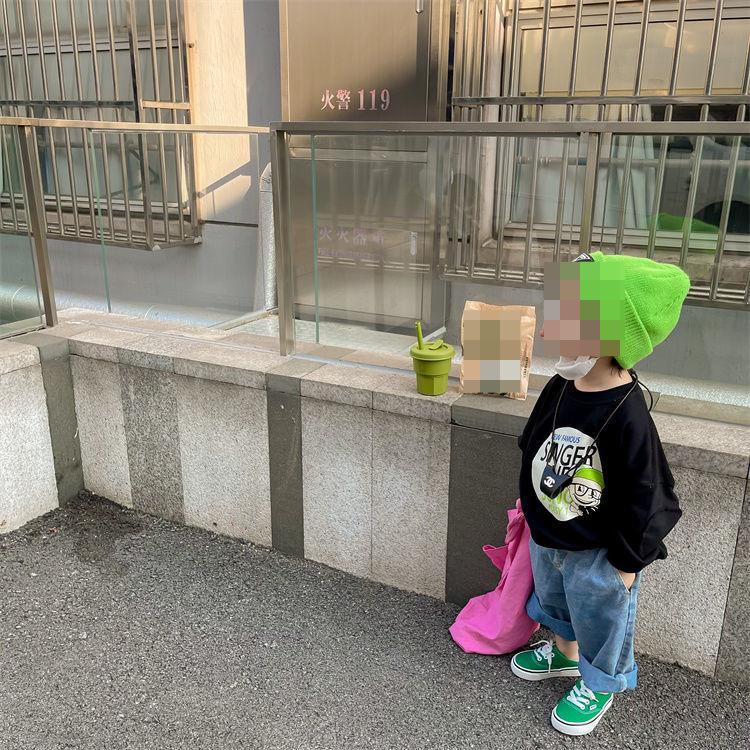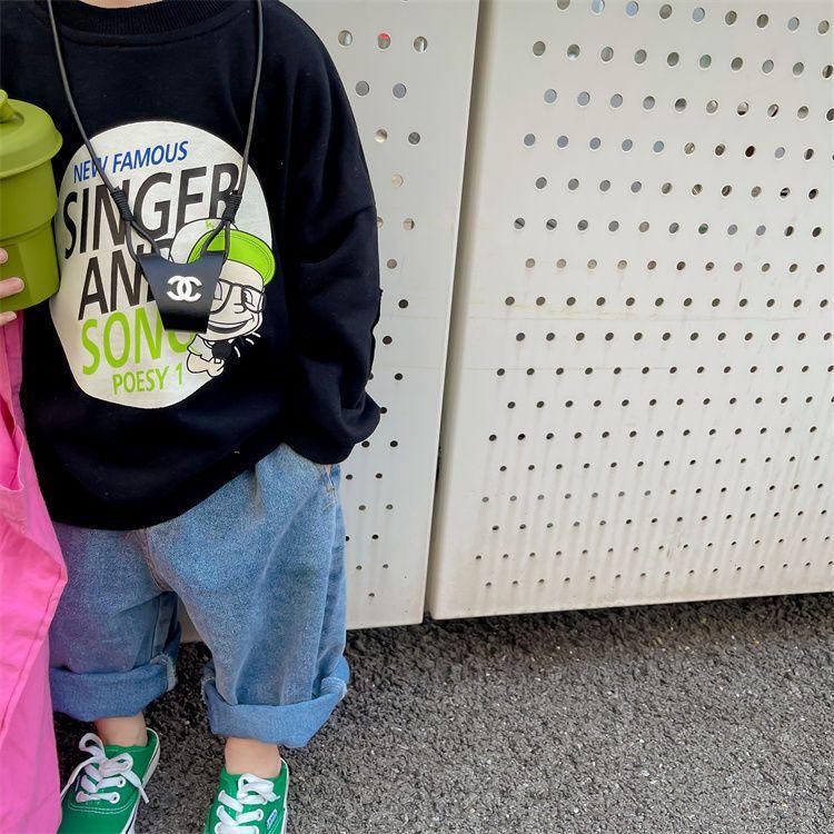 Suéter de cuello redondo para niño ropa de otoño para niños 23 nuevo estilo coreano primavera y otoño holgado estilo occidental top estampado 0067A008