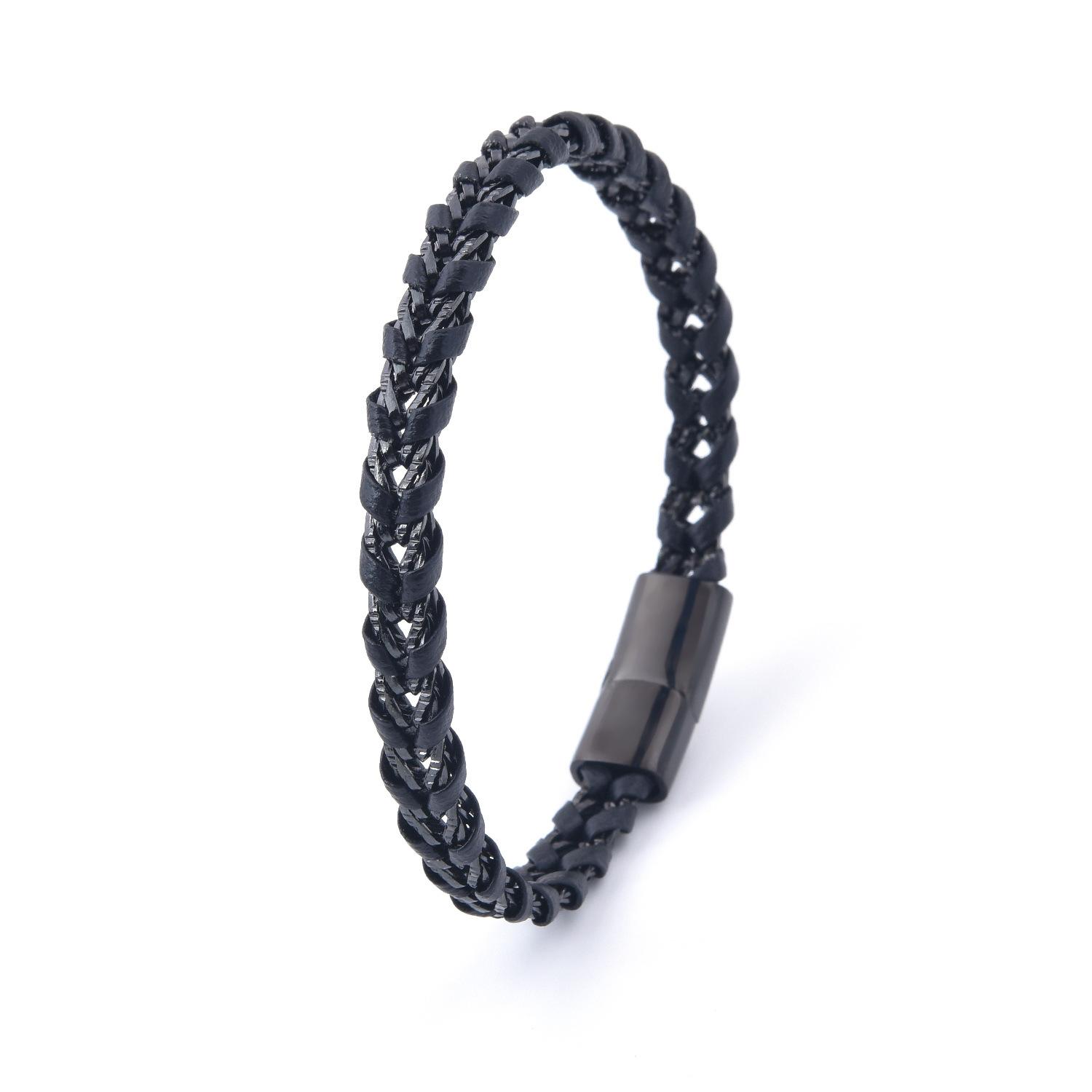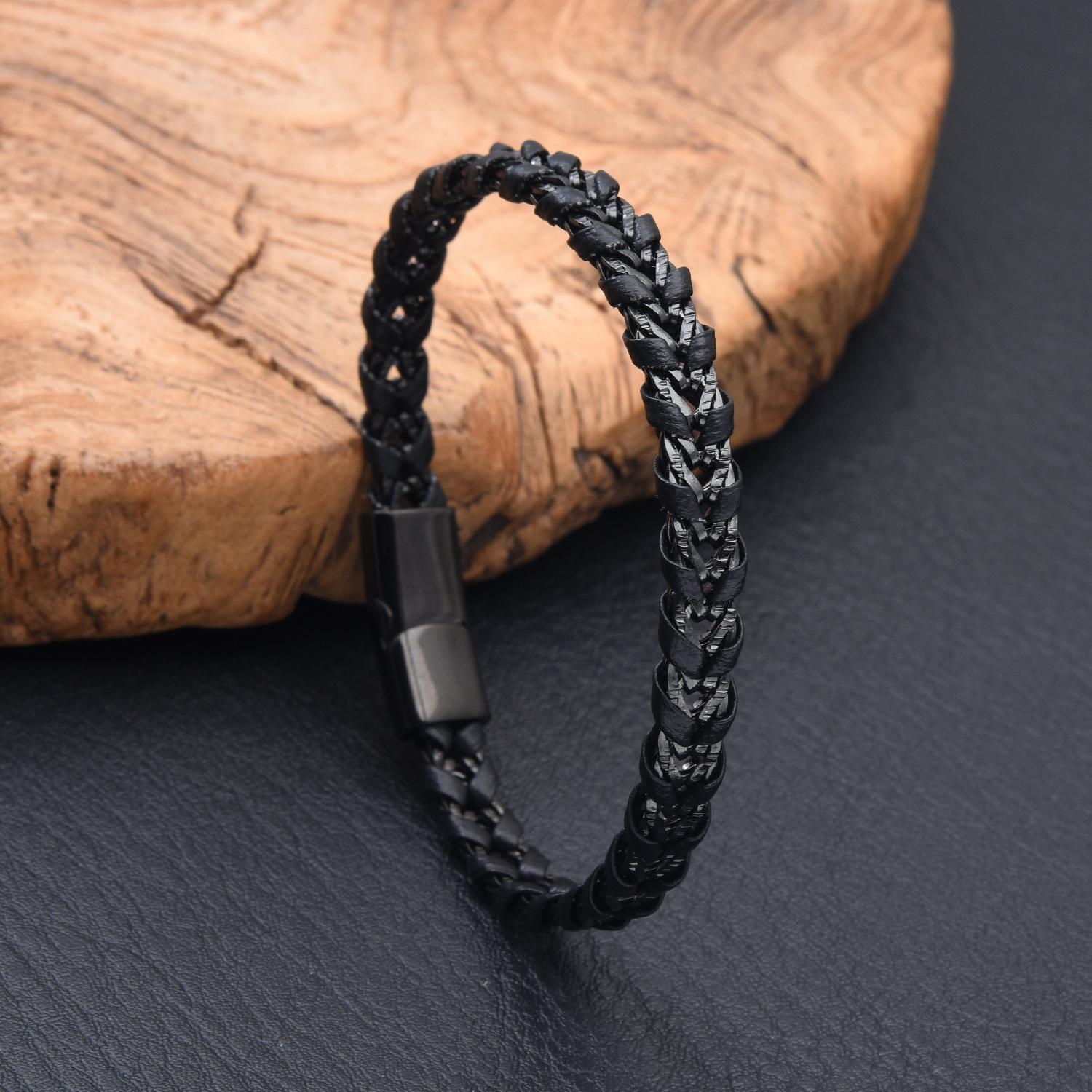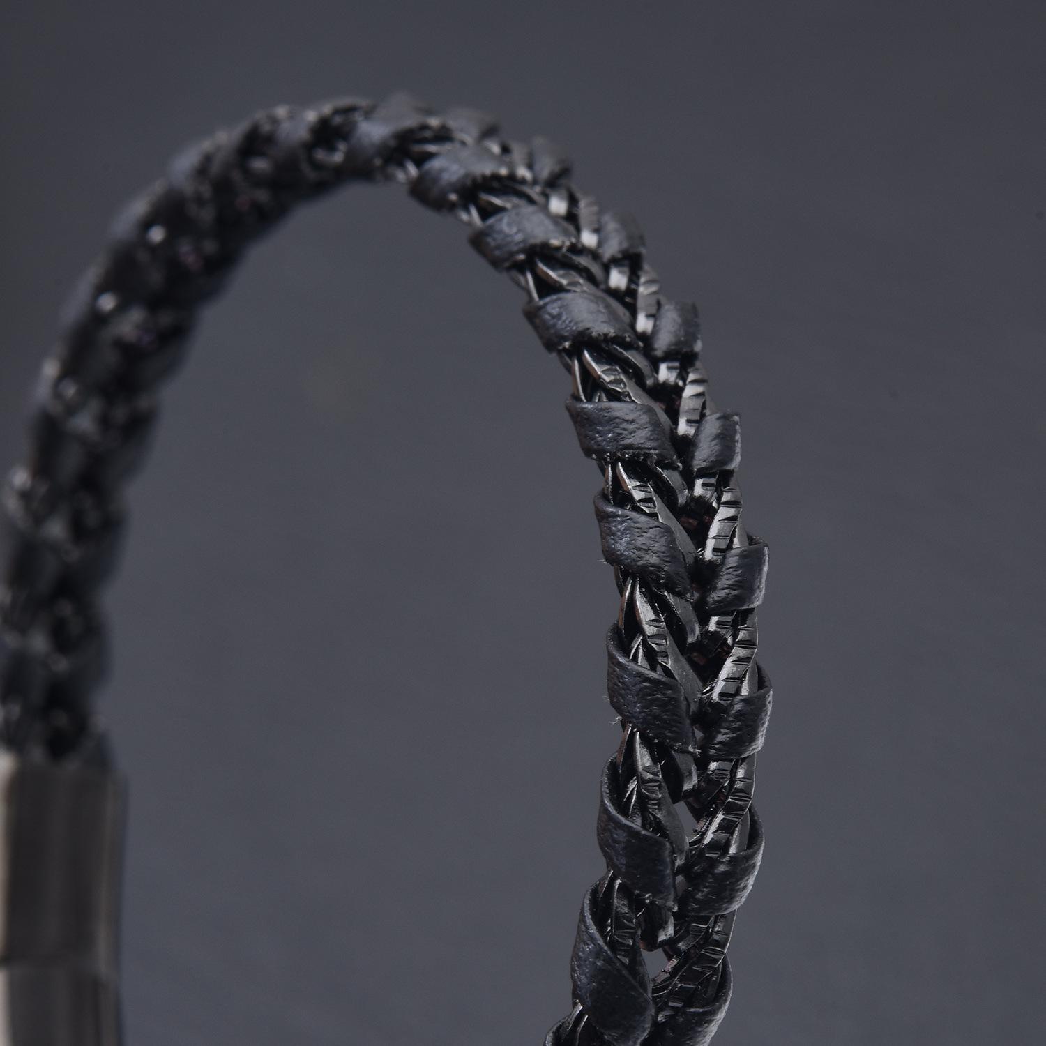 Venta al por mayor de accesorios europeos y americanos, pulsera de cuero de acero de titanio creativa y sencilla para hombre, pulsera negra, joyería para estudiantes, lujo ligero