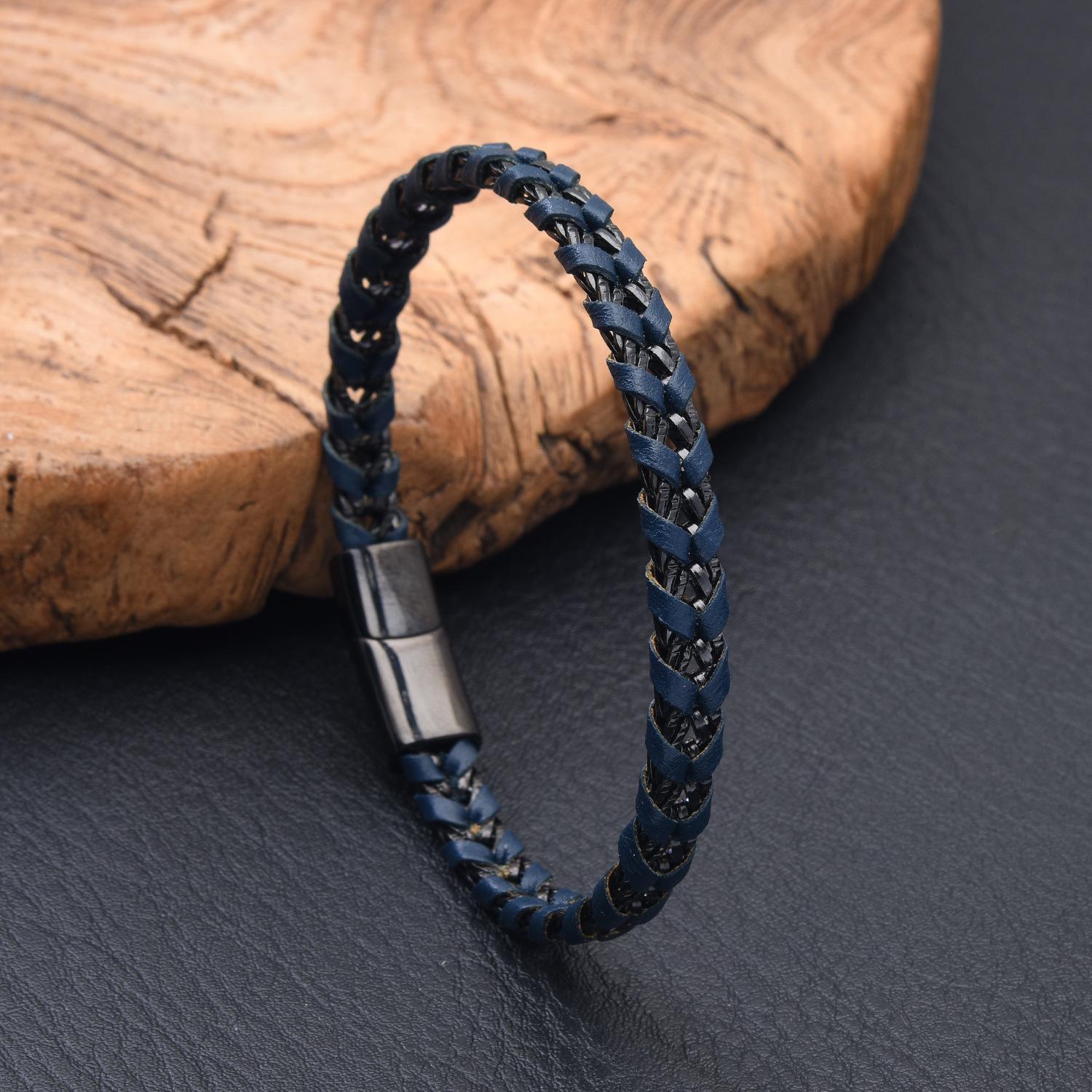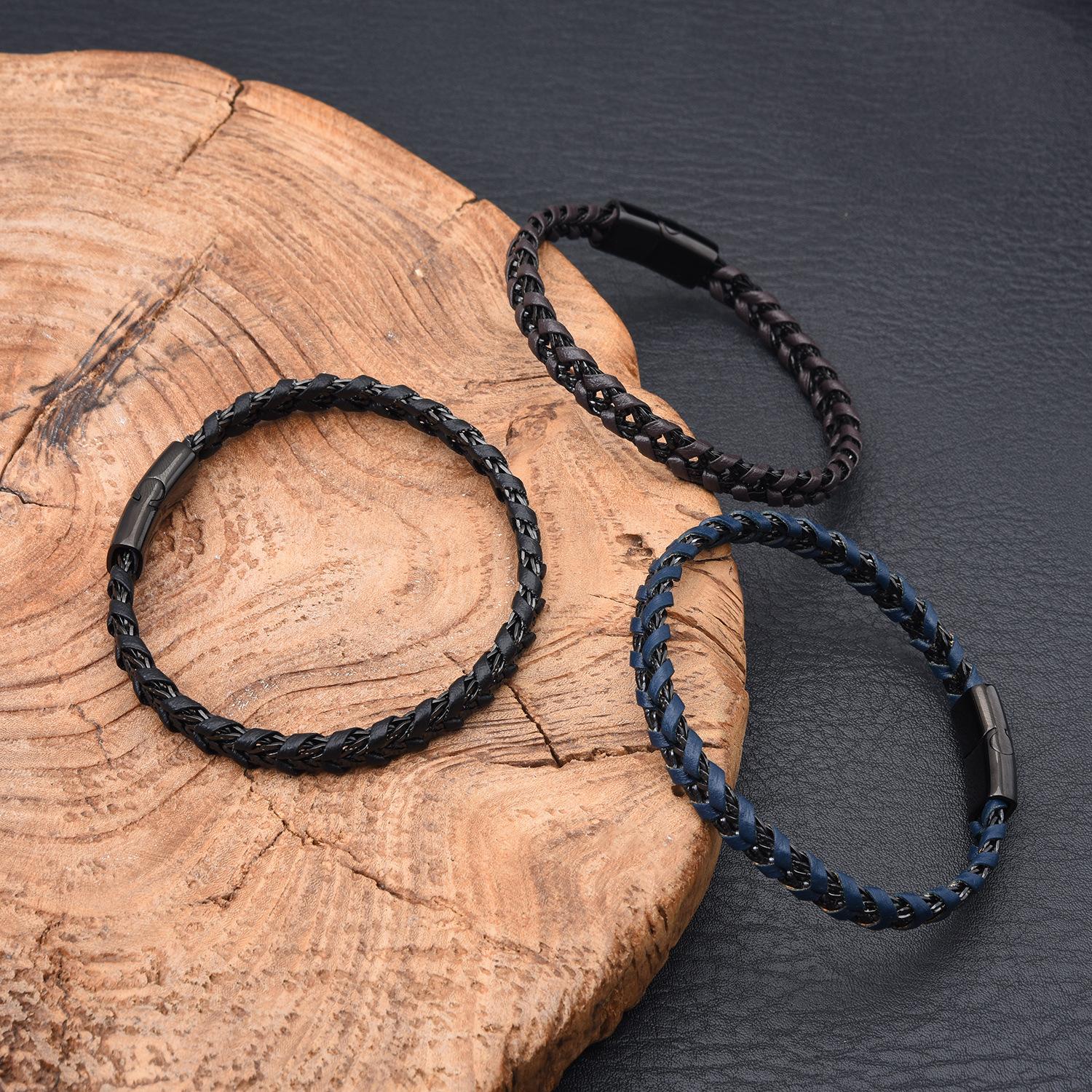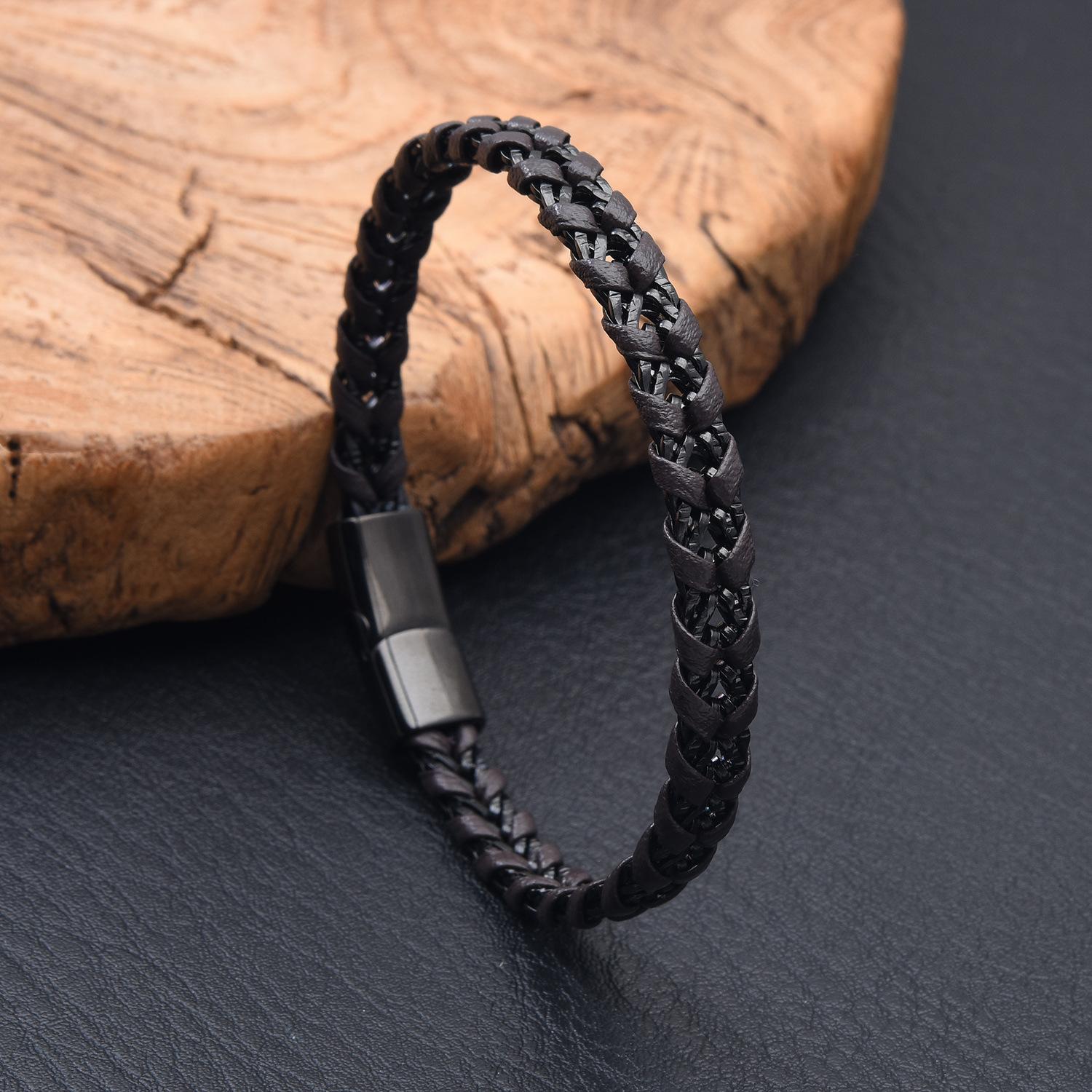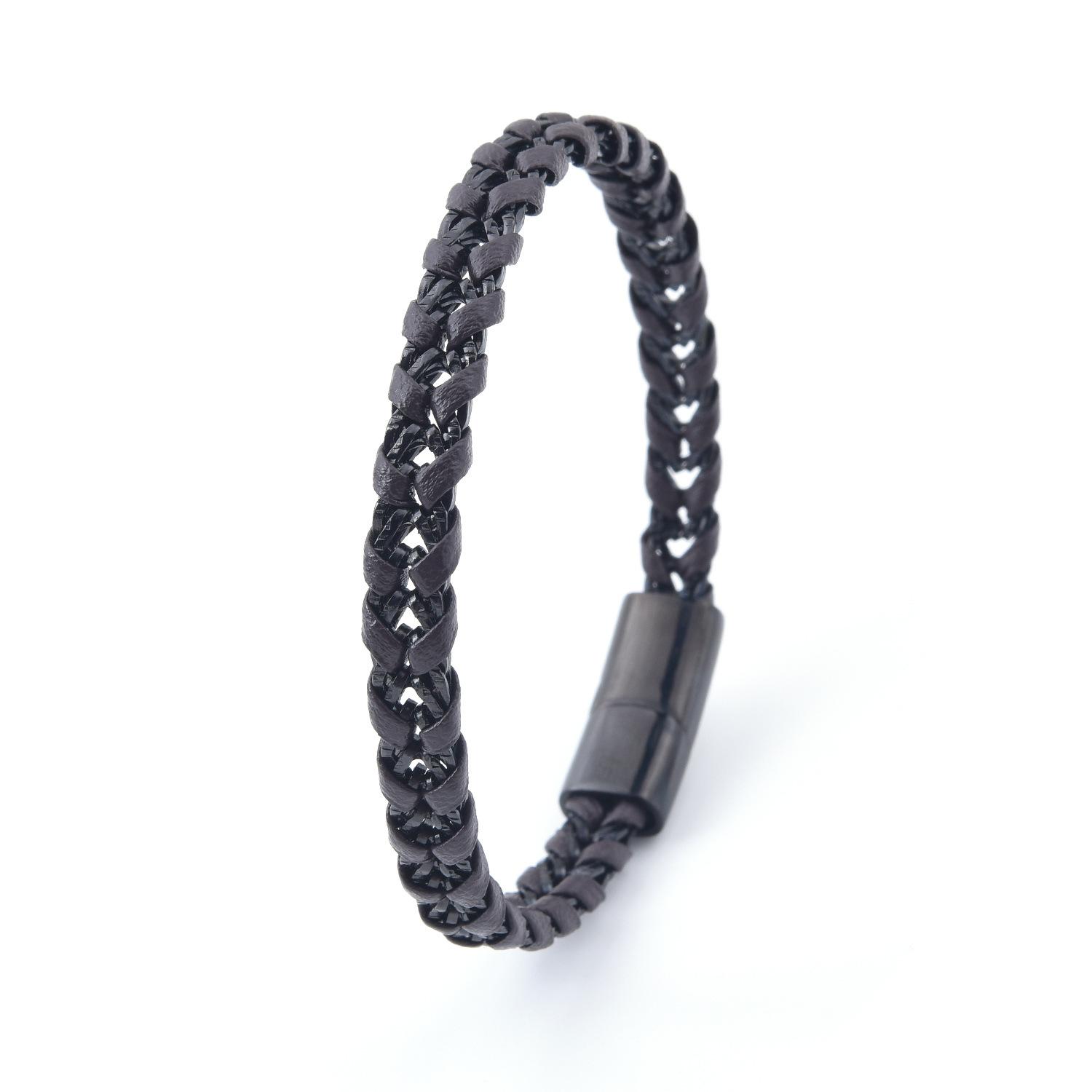 Venta al por mayor de accesorios europeos y americanos, pulsera de cuero de acero de titanio creativa y sencilla para hombre, pulsera negra, joyería para estudiantes, lujo ligero
