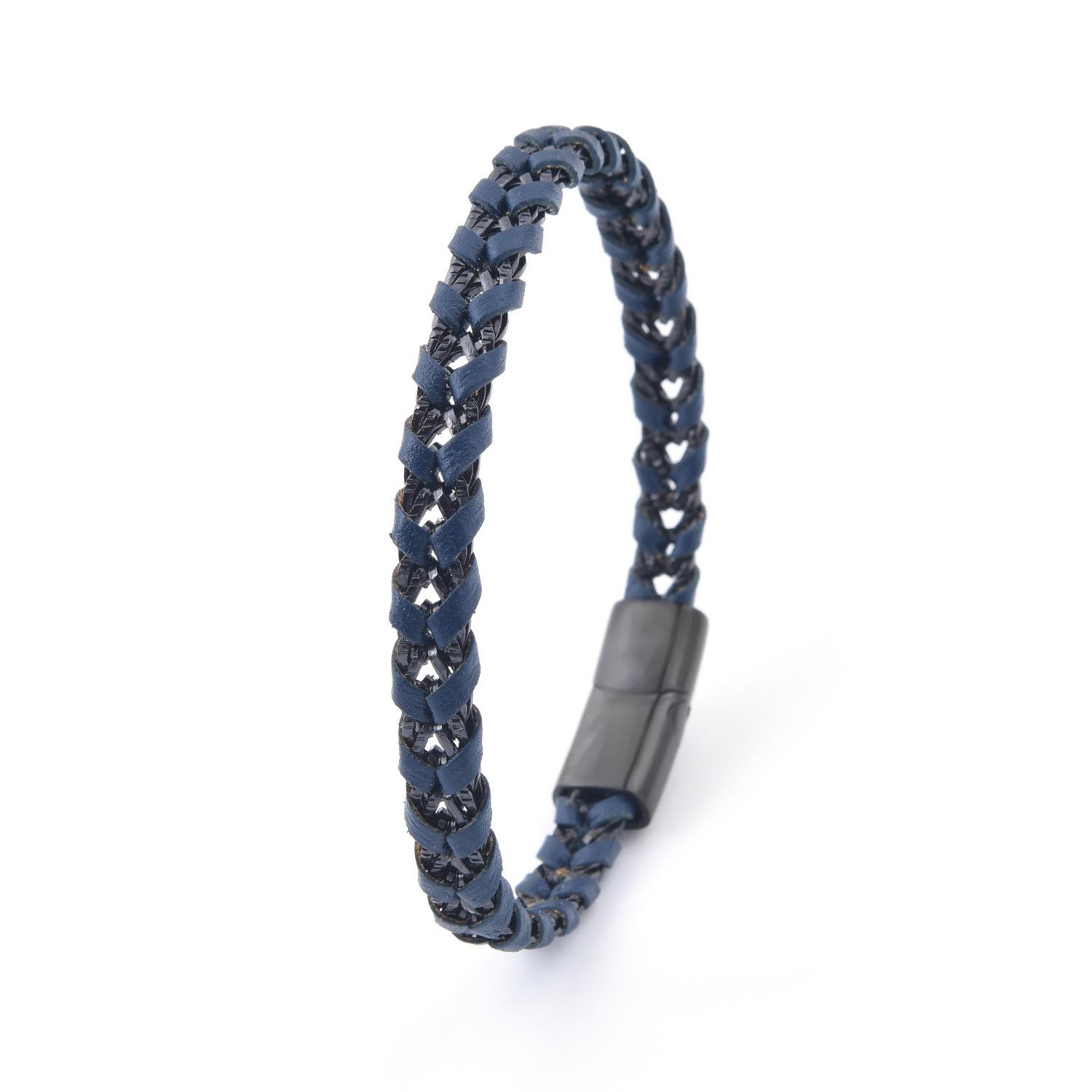 Compra Venta al por mayor de accesorios europeos y americanos, pulsera de cuero de acero de titanio creativa y sencilla para hombre, pulsera negra, joyería para estudiantes, lujo ligero al por mayor en Joom.pro