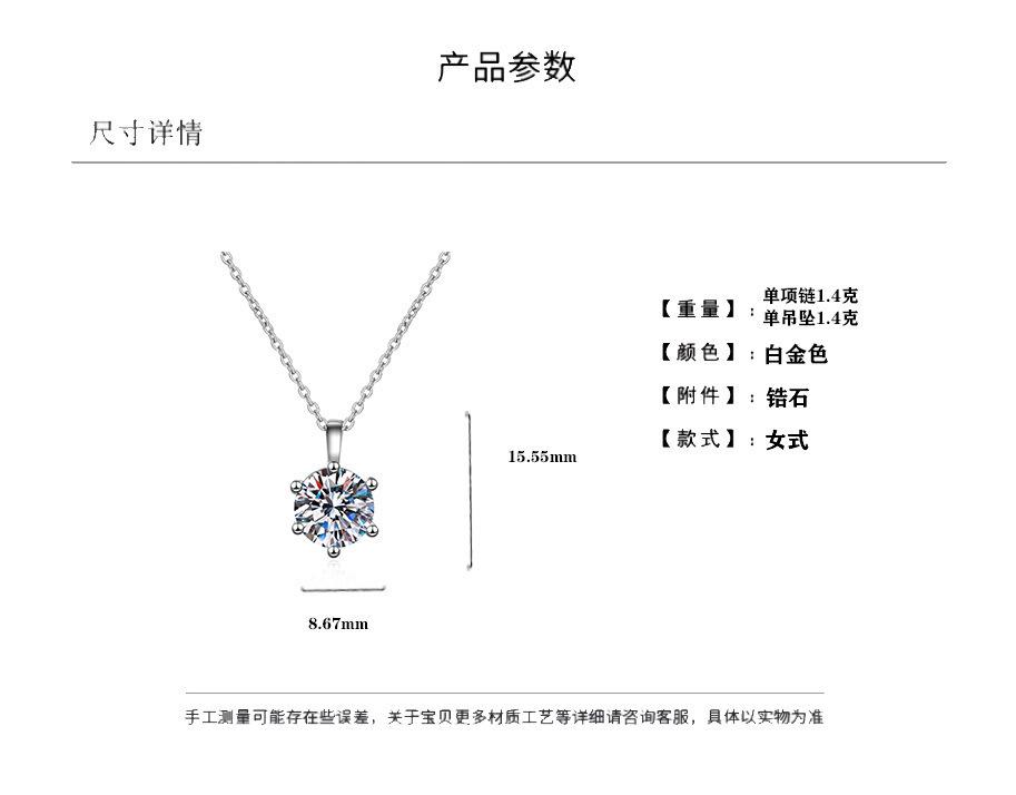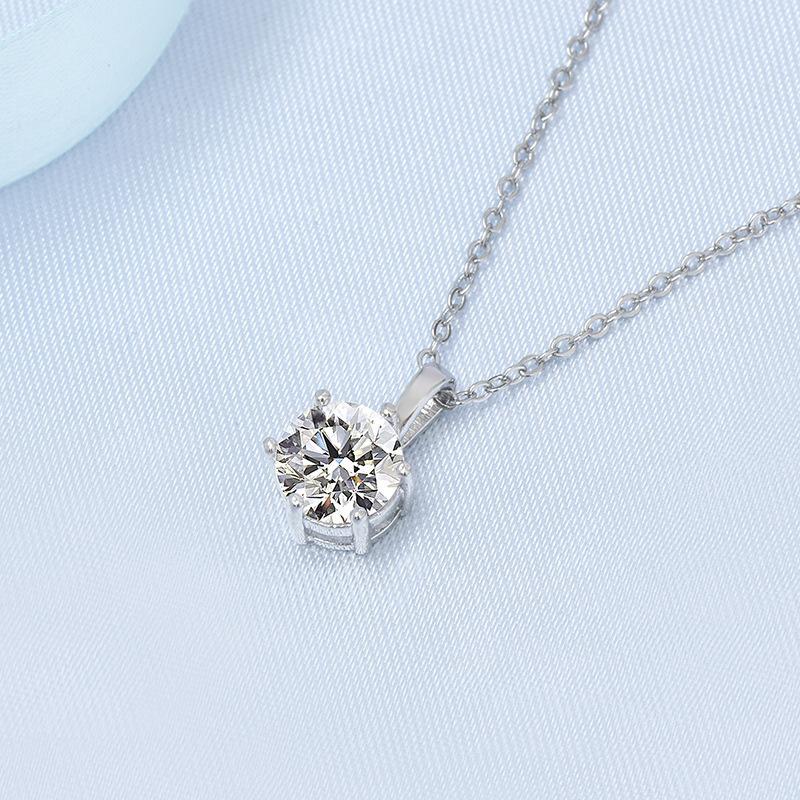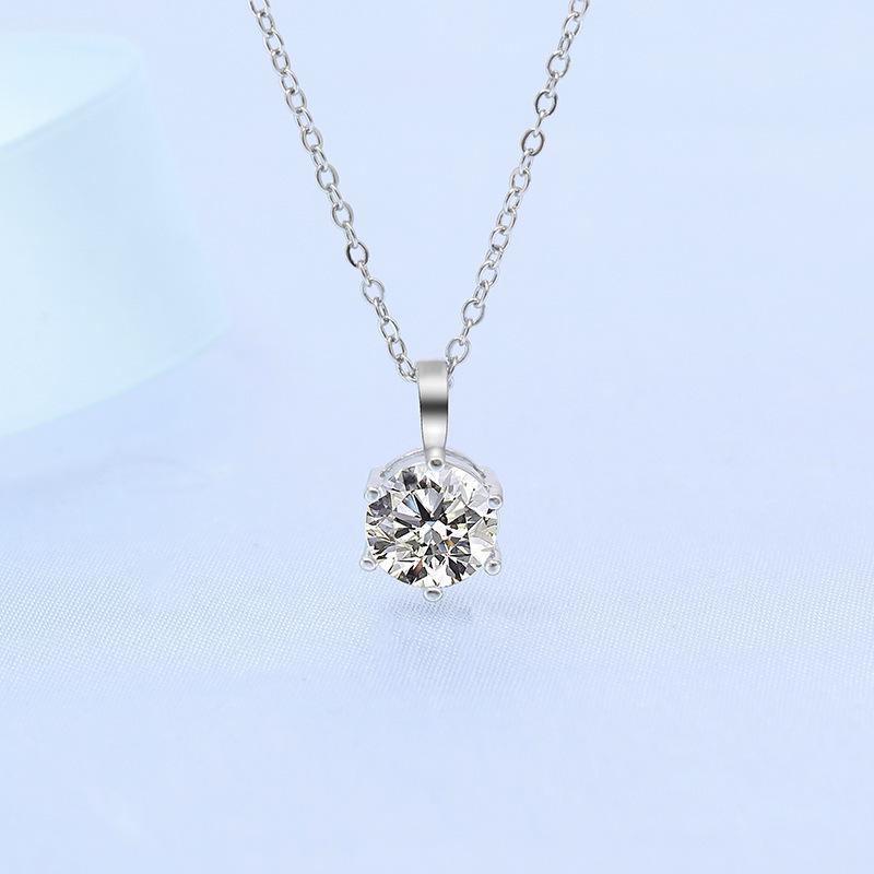 Collar de moissanita con transmisión en vivo, clásico, de oro de 18 quilates, con seis garras y dos quilates, sencillo, pequeño y fresco, para mujer.