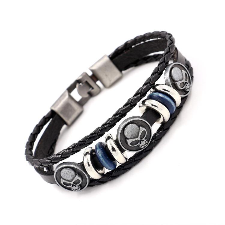 | Nombre: Pulsera de cuero con cabeza de fantasma de calavera Estilo: retro, moda, punk... Material: aleación + cuero Artesanía: hecho a mano Color: negro, marrón Tamaño: aproximadamente 21 cm de largo, 0.6 cm de ancho Peso: aproximadamente 19 gramos (venta directa de fábrica, tamaño personalizable) Embalaje: 1 pieza/bolsa opp, 12 piezas en una bolsa opp grande ------------------------------------------------------------------------------------------------------- Debido a los diferentes métodos de medición, habrá ligeras diferencias en tamaño y peso, lo que no es un problema de calidad del producto. |