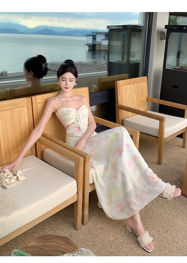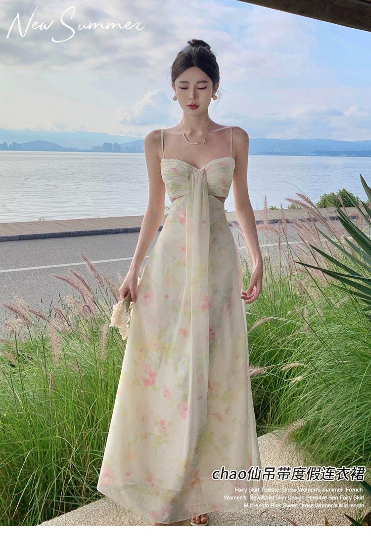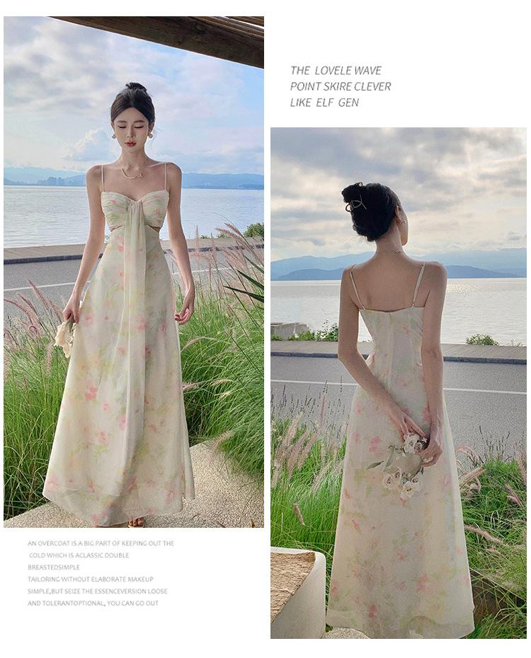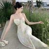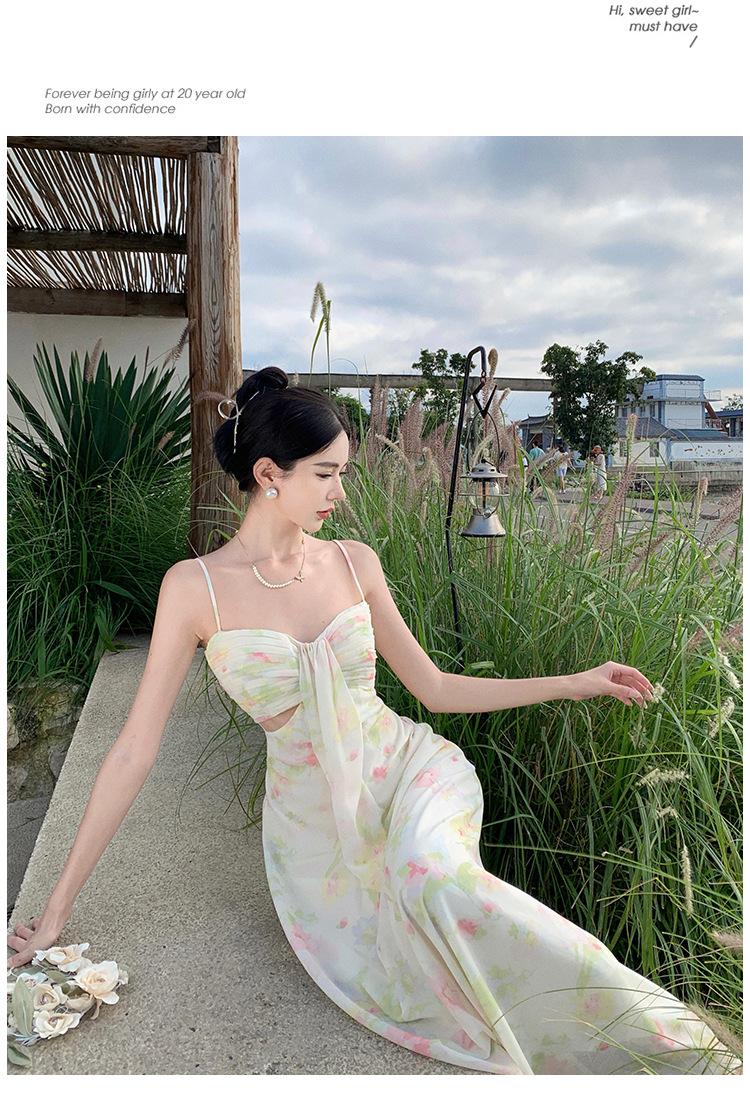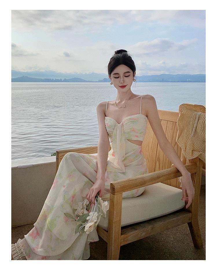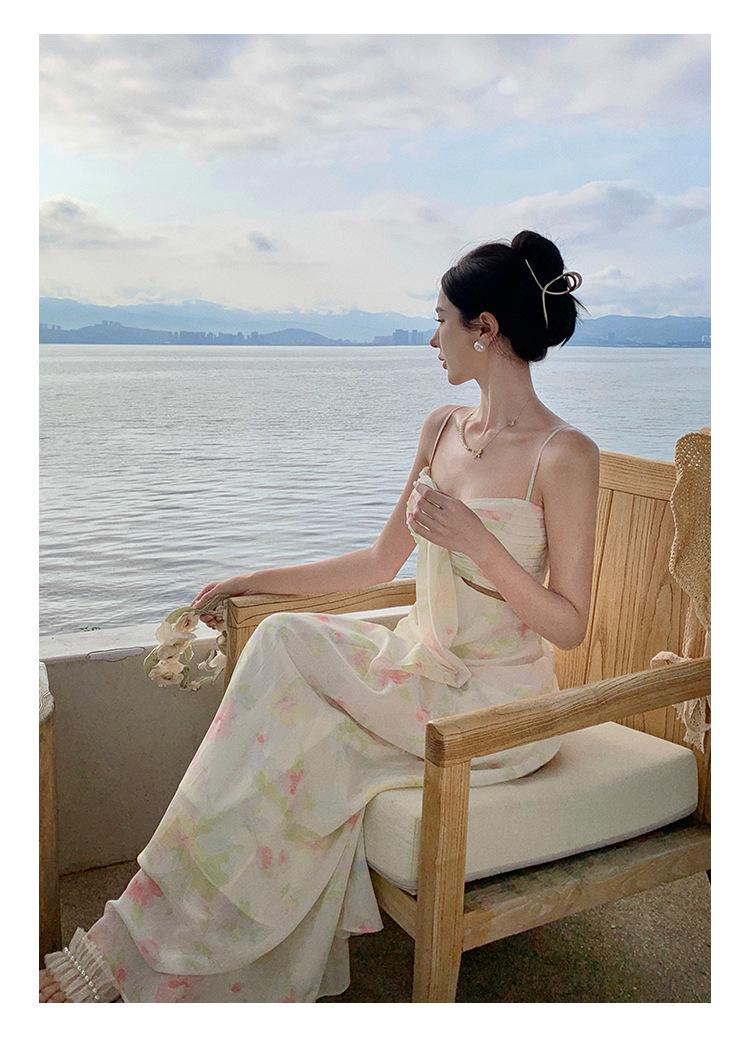 Vestido largo playero con tirantes, estilo vacaciones de verano para mujer de alta gama, vestido tubo con cintura elástica, vestido playero de gasa floral.