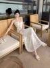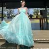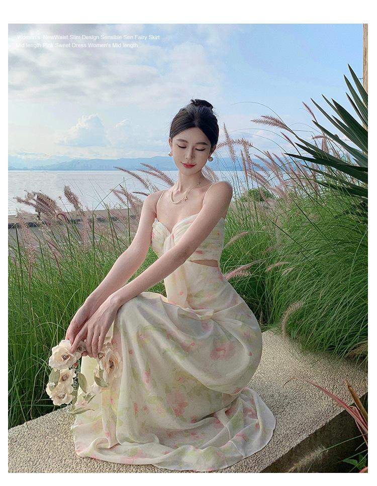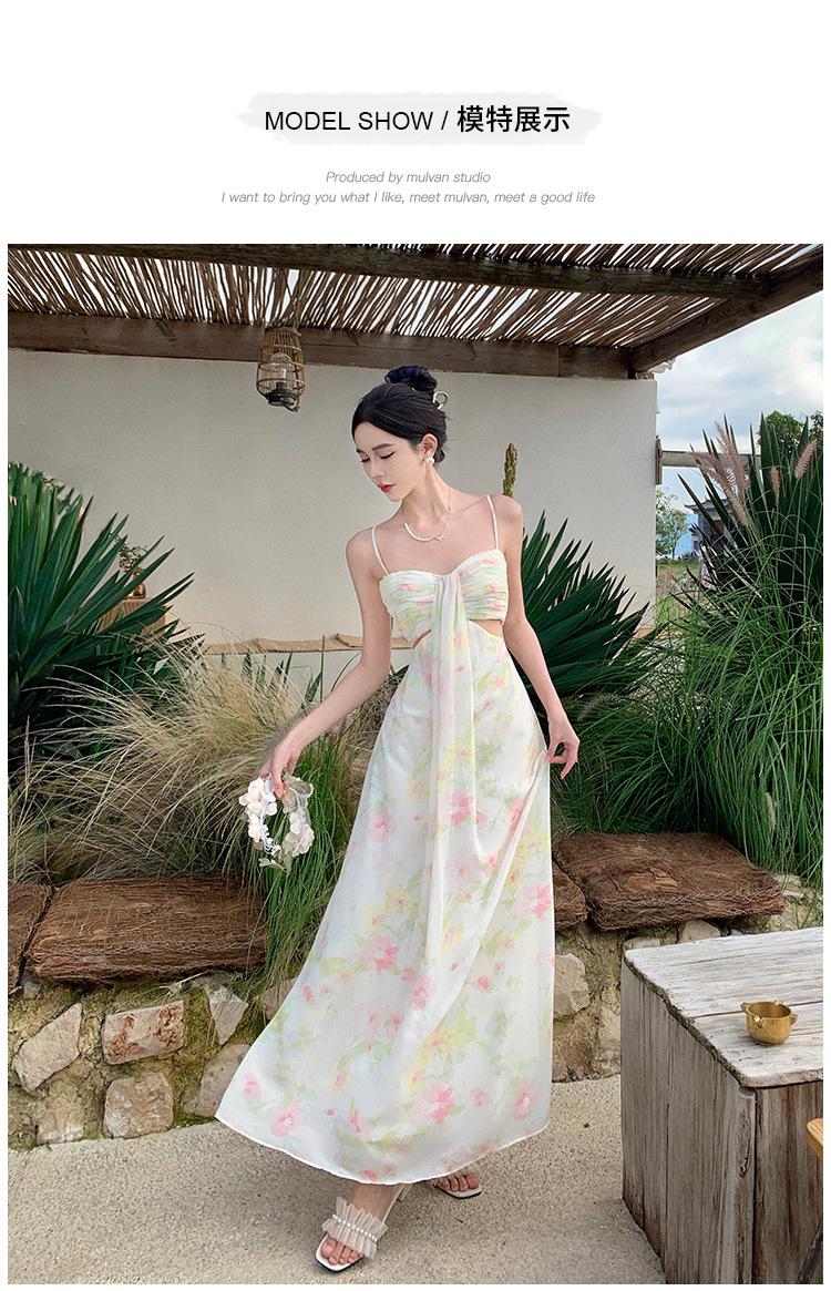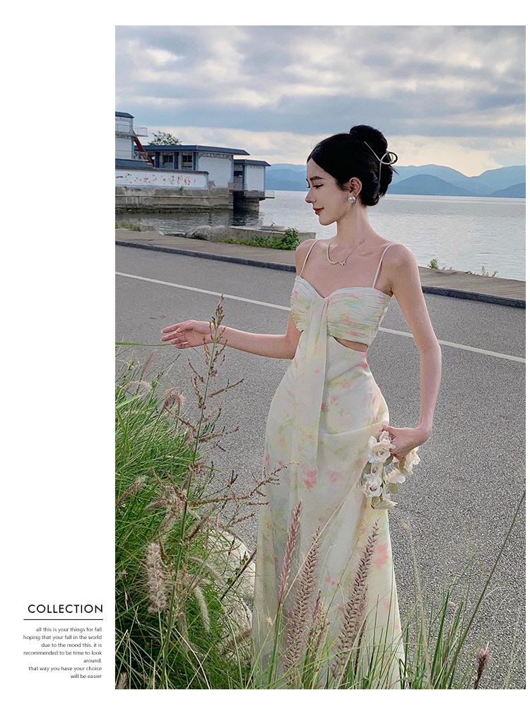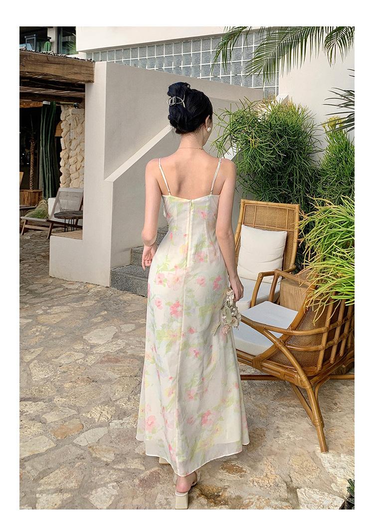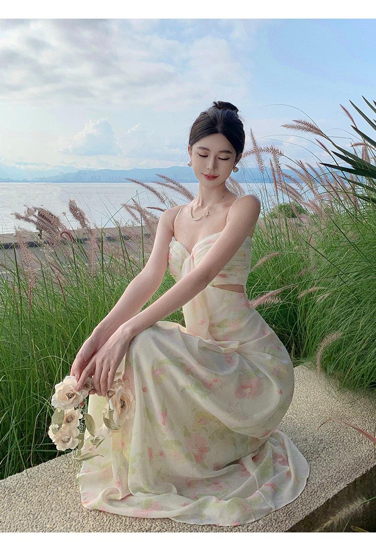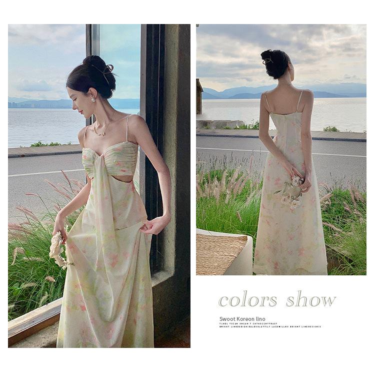 Vestido largo playero con tirantes, estilo vacaciones de verano para mujer de alta gama, vestido tubo con cintura elástica, vestido playero de gasa floral.