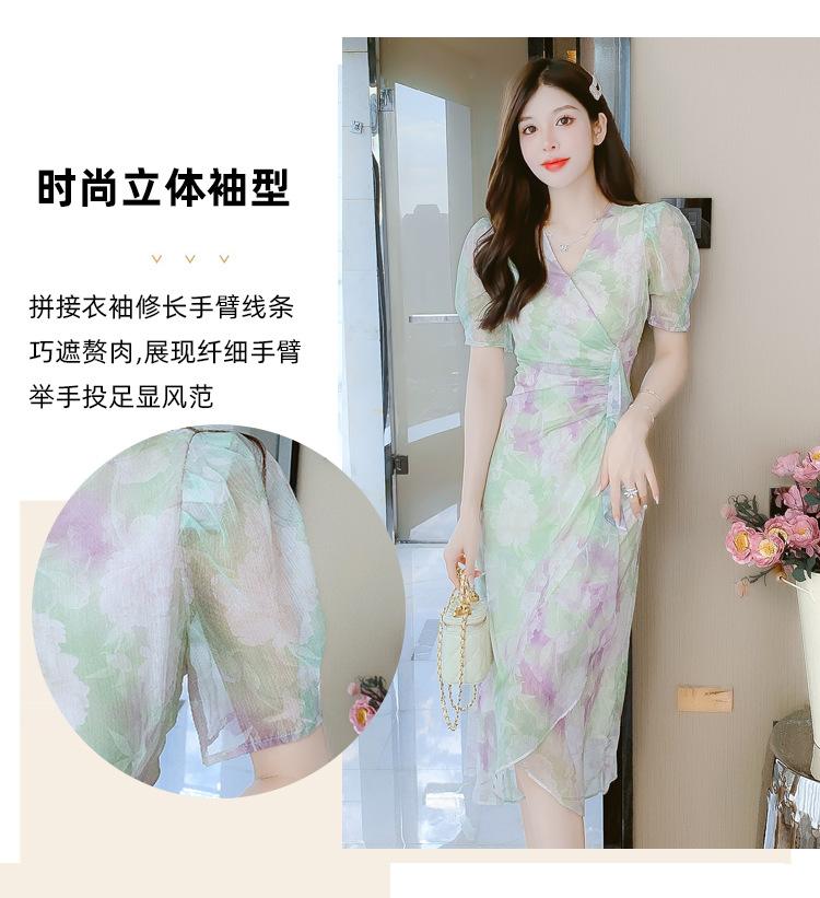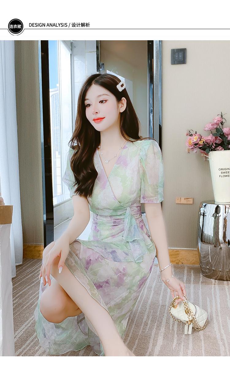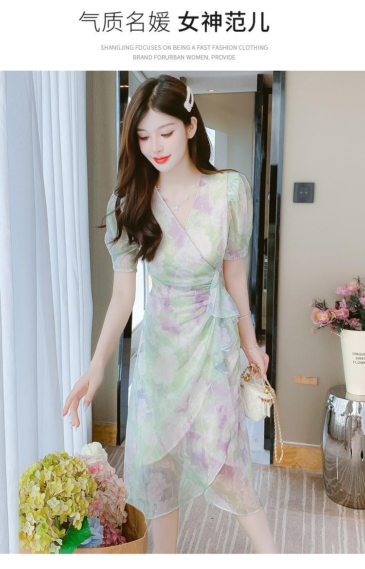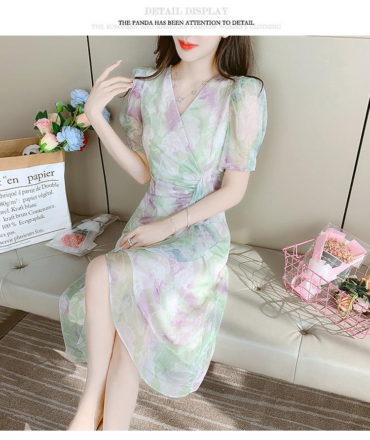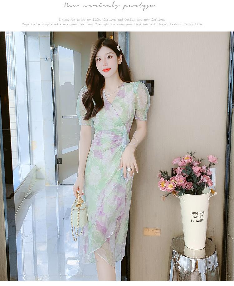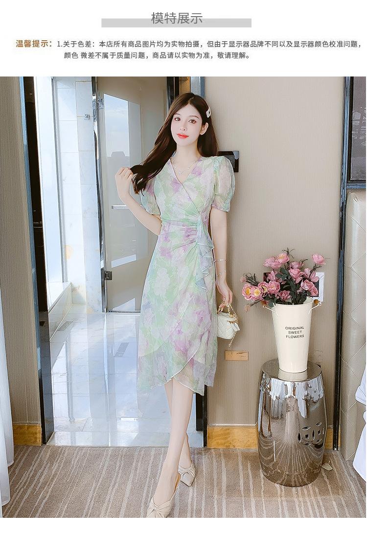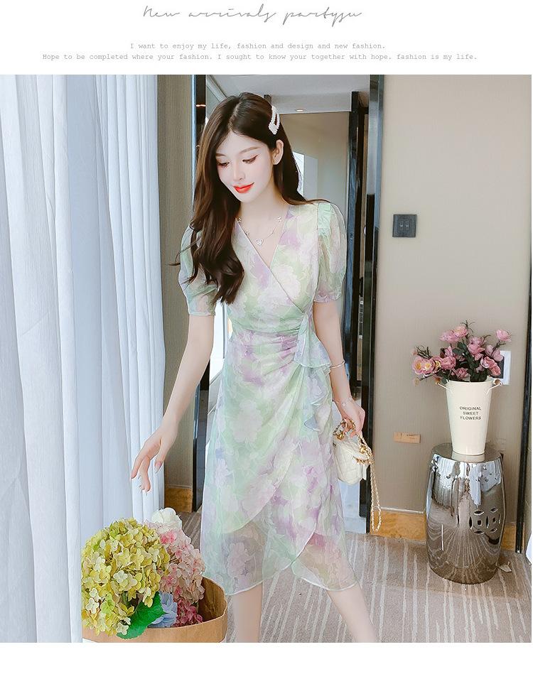 Vestido de verano 2023 con estampado floral, estilo francés, de hada, suave, de alta gama, con escote en V y bajo irregular