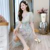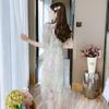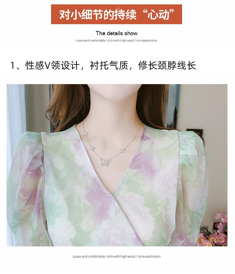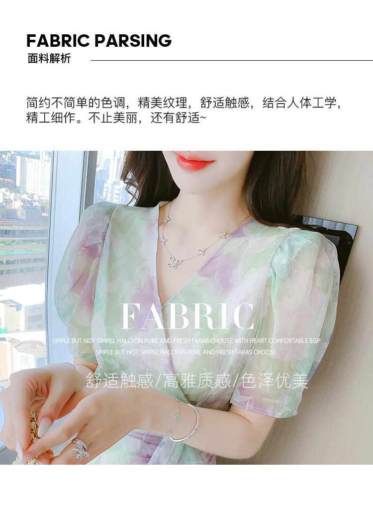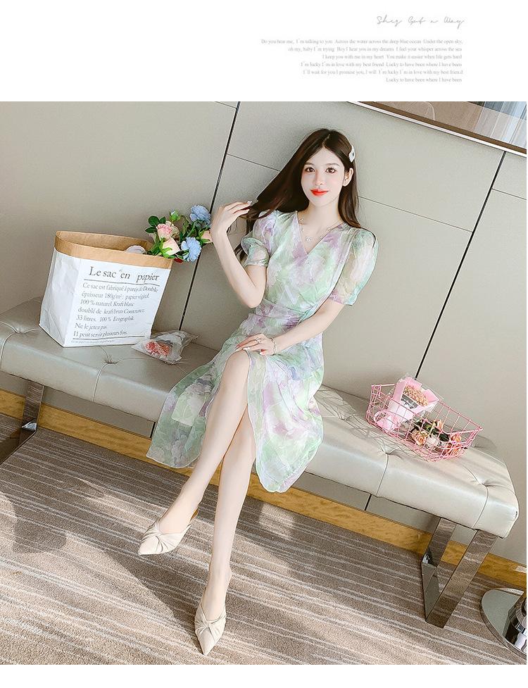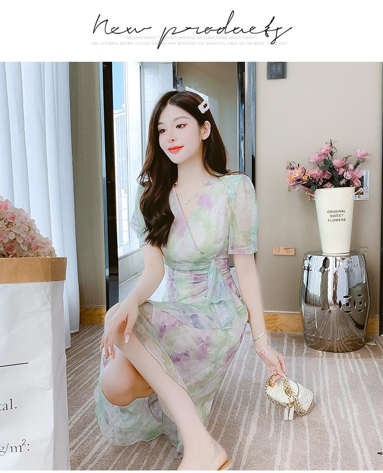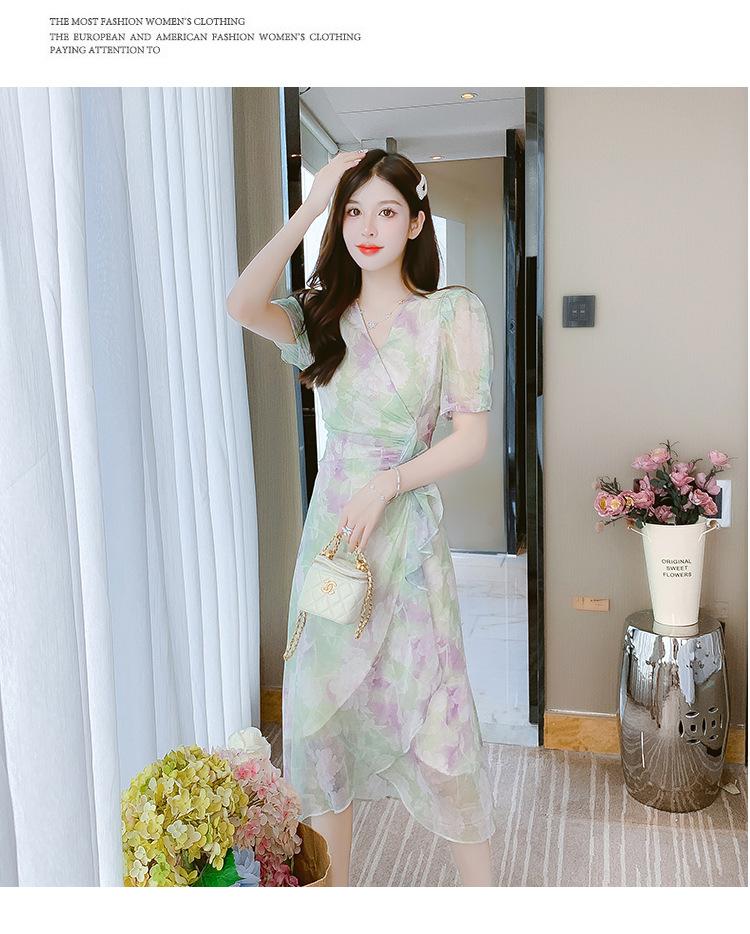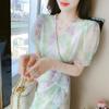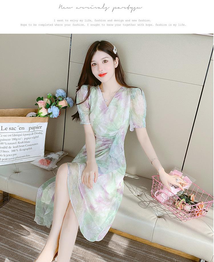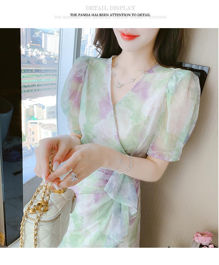 Vestido de verano 2023 con estampado floral, estilo francés, de hada, suave, de alta gama, con escote en V y bajo irregular