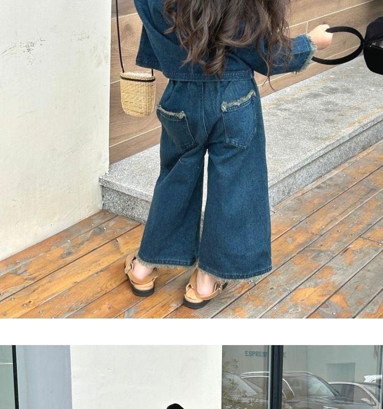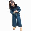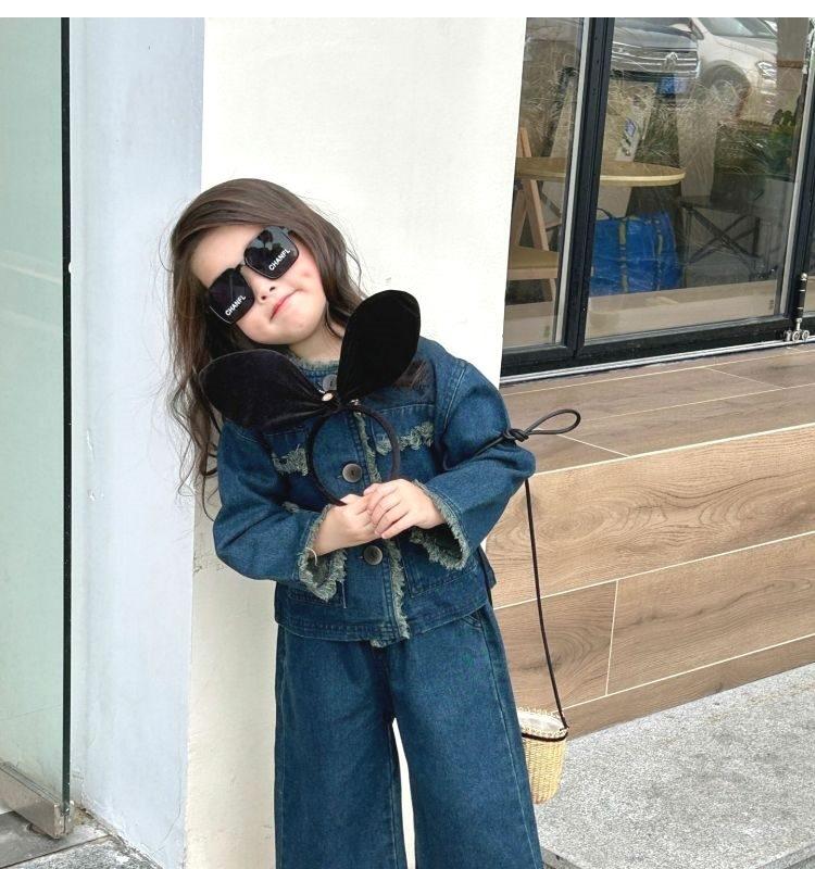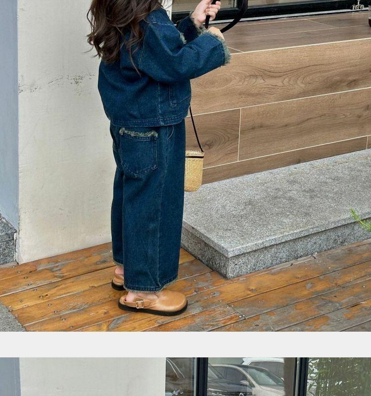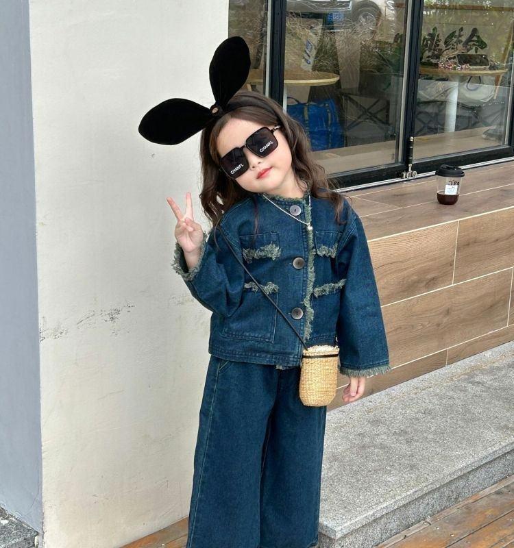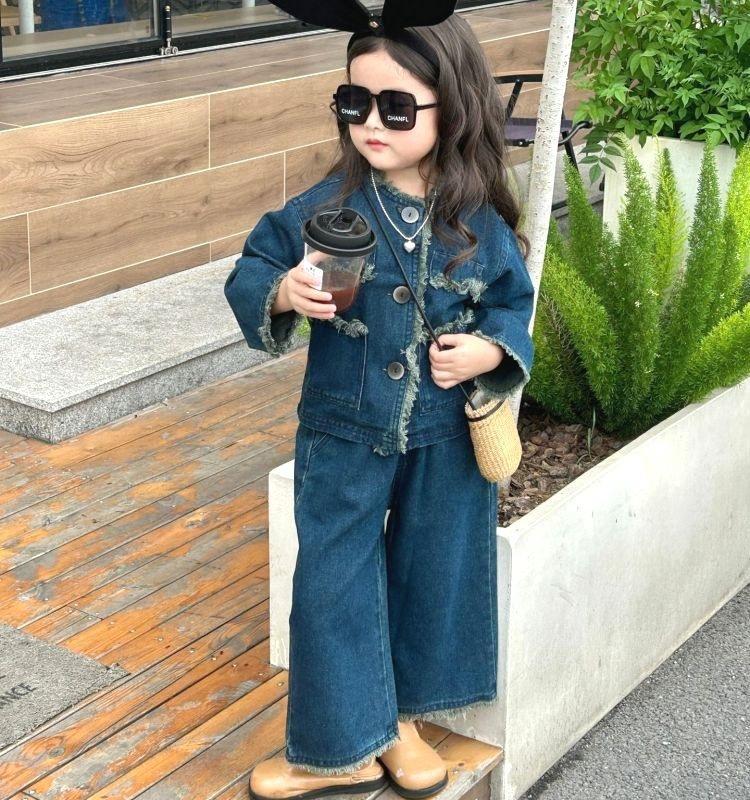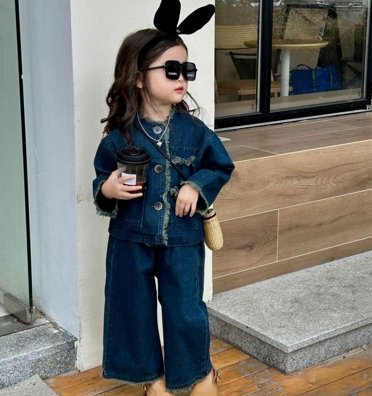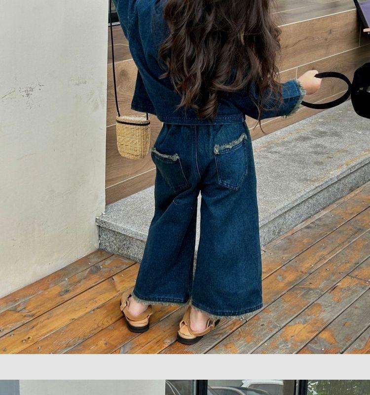 Conjunto de mezclilla moderno estilo coreano para niñas 2025 Otoño Casual Lavado Suave Chaqueta Pantalones de pierna ancha Conjunto de dos piezas