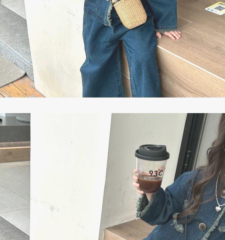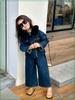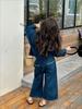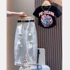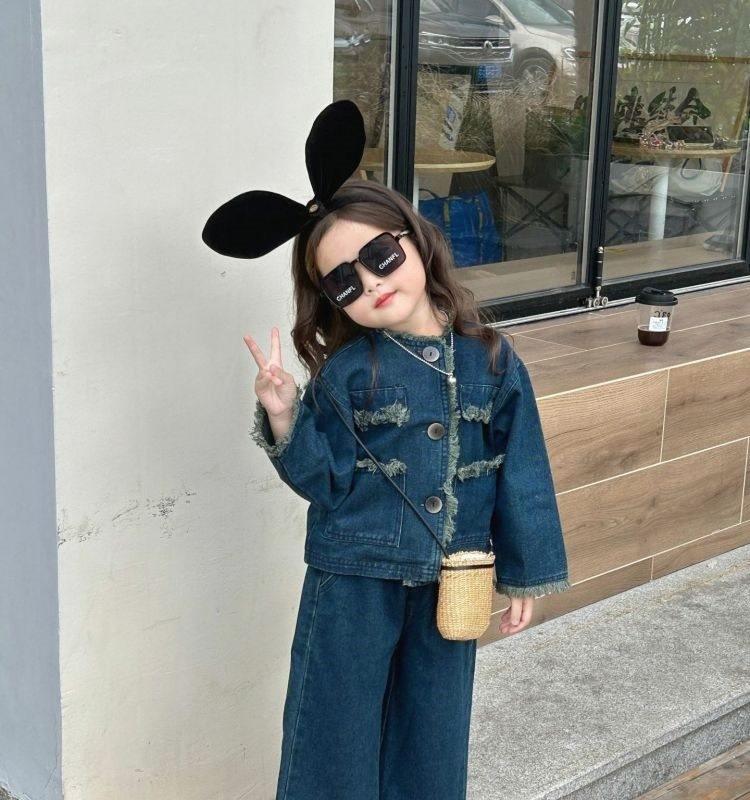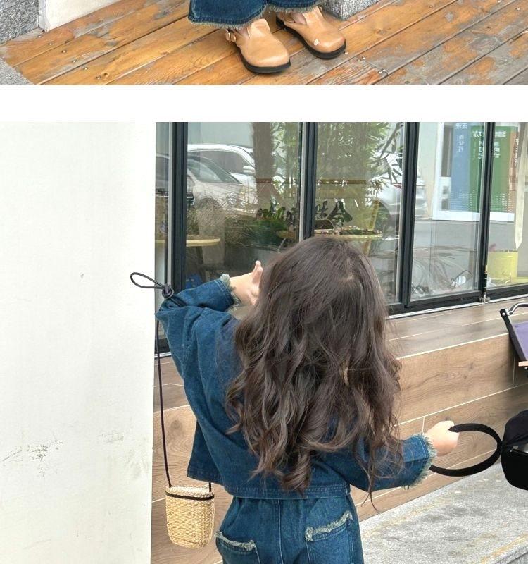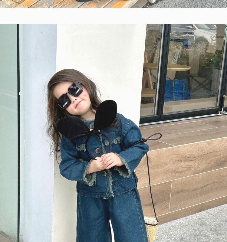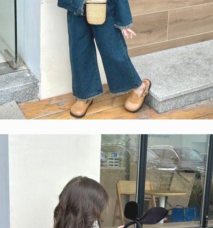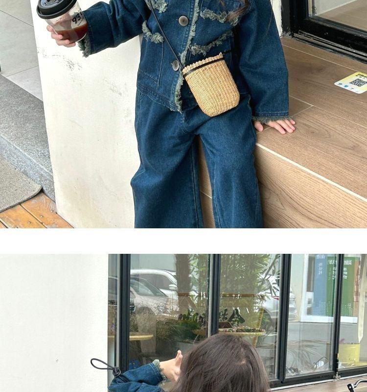 Conjunto de mezclilla moderno estilo coreano para niñas 2025 Otoño Casual Lavado Suave Chaqueta Pantalones de pierna ancha Conjunto de dos piezas