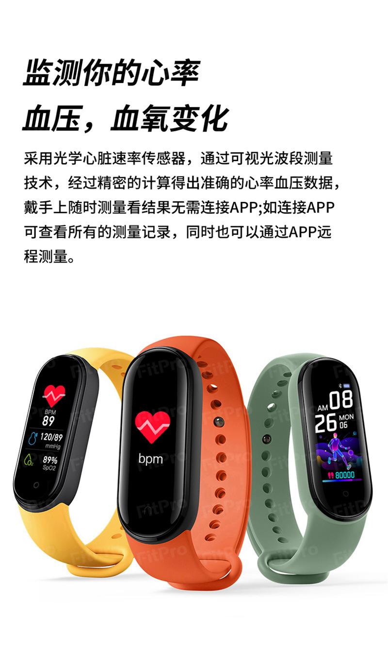 Explosiones transfronterizas nuevo M5 frecuencia cardíaca presión arterial oxígeno en sangre multilingüe Bluetooth pulsera deportiva inteligente reloj inteligente