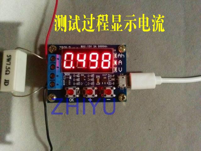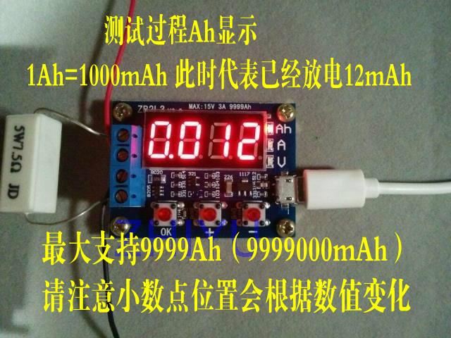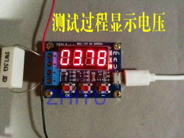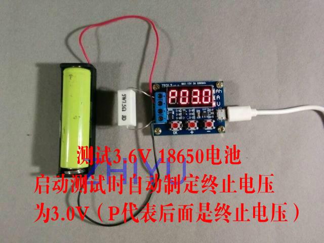 2. Conecte el polo positivo de la batería a la entrada positiva y el polo negativo a la entrada negativa. ¡No los conecte al revés (conectarlos al revés con una carga podría dañar el circuito)! Conecte la carga a la salida positiva y a la salida negativa, y alimente el comprobador con el micro USB (no utilice el USB de una computadora de escritorio ni portátil). Se mostrará el voltaje de la batería.