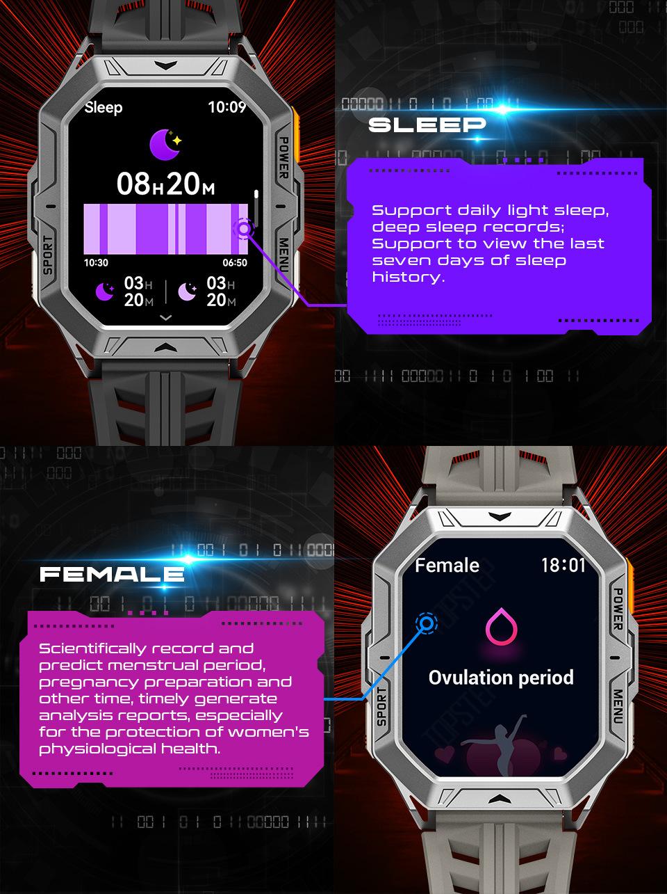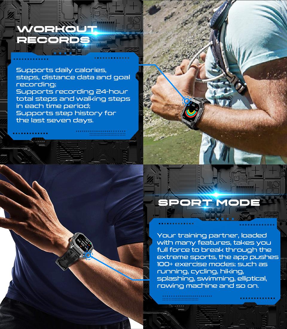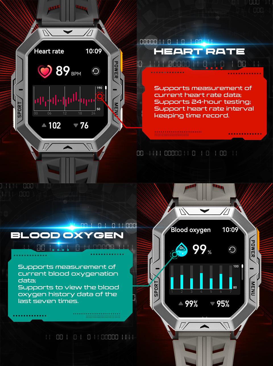 Waterproof, Step counting, Heart rate monitoring, Blood pressure measurement, Social entertainment, Bluetooth ...