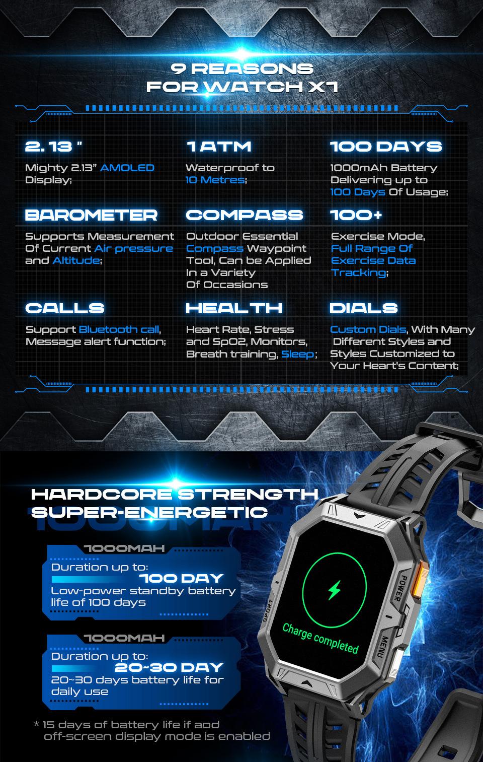 Reloj inteligente X1PRO transfronterizo con Bluetooth, asistente de voz, barómetro, brújula, reloj deportivo exterior