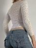 Camiseta de manga larga francesa nueva europea y americana, corta, ajustada, de moda, con parte inferior de encaje para mujer, chica atractiva