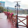 Medium 2.5 m high, double-headed red garden light/Solar, White Light