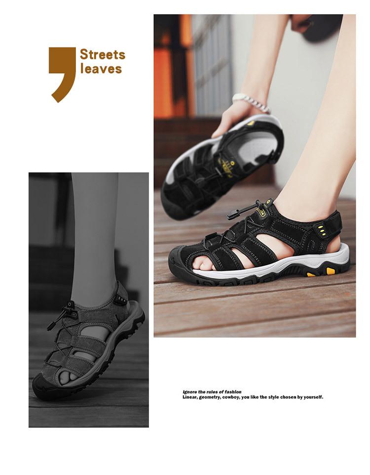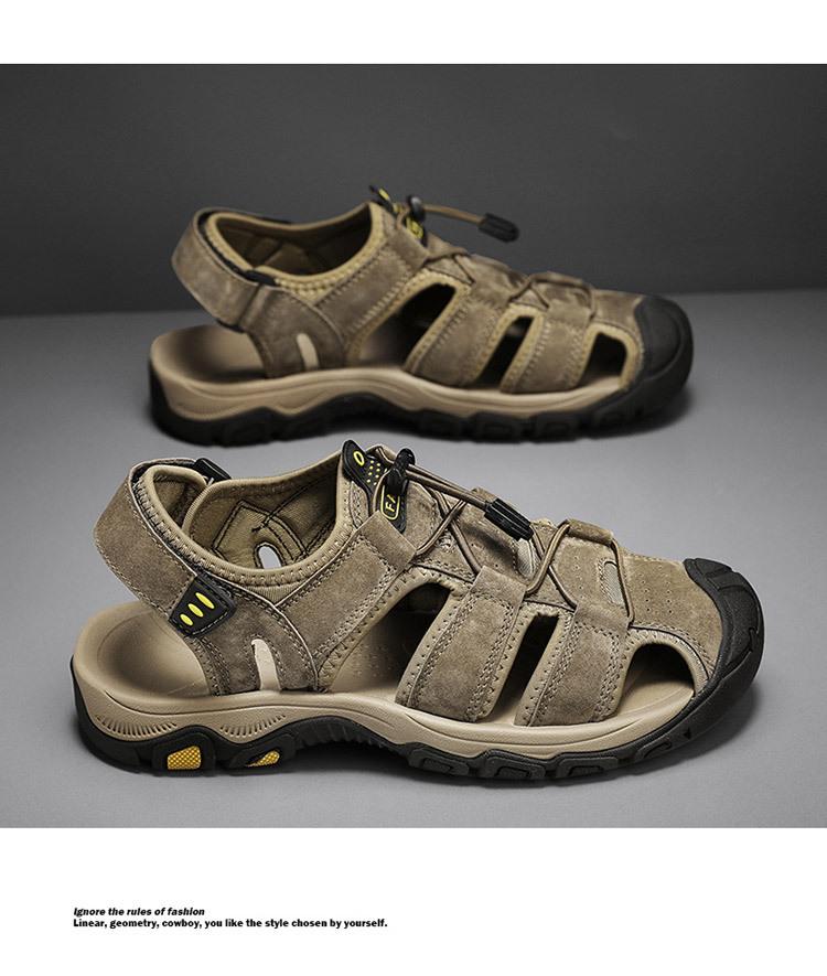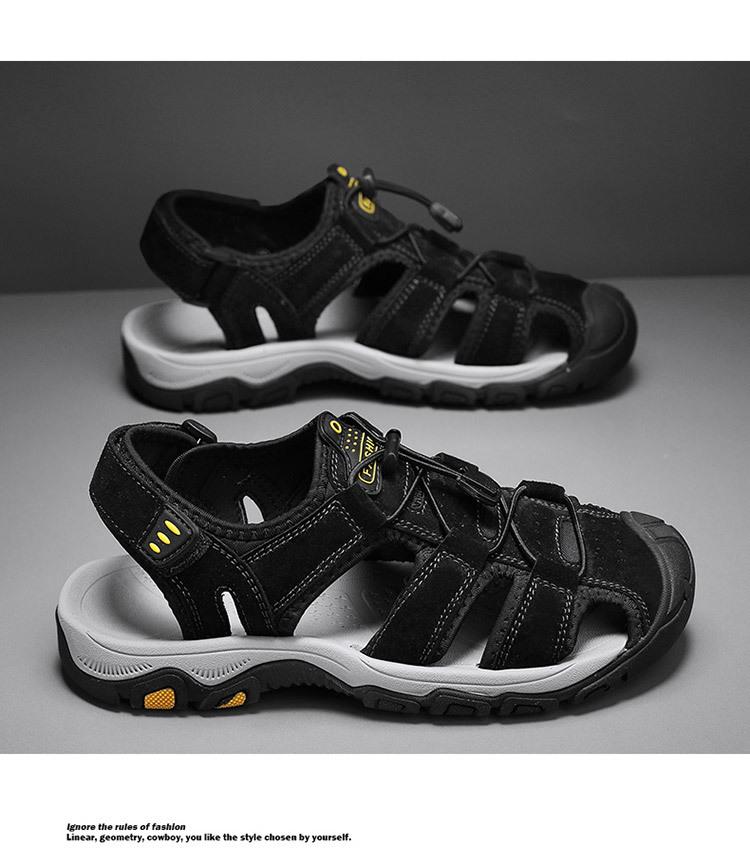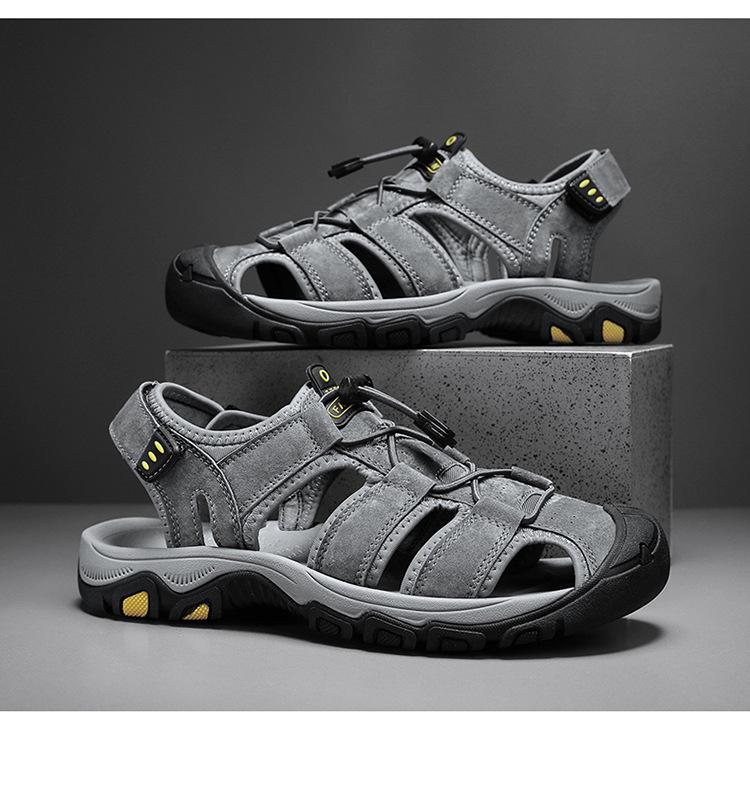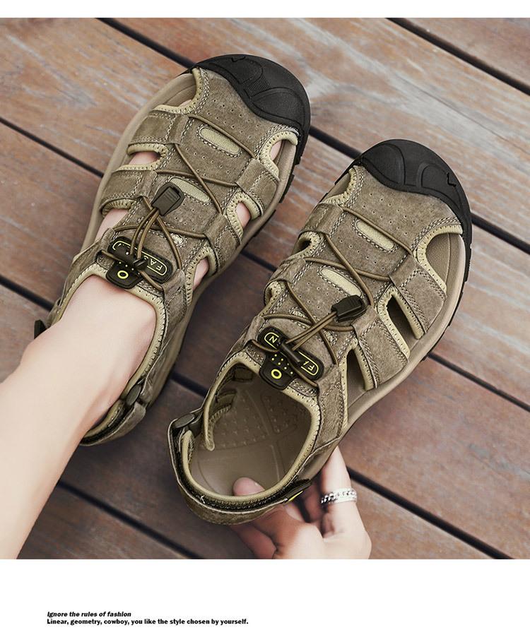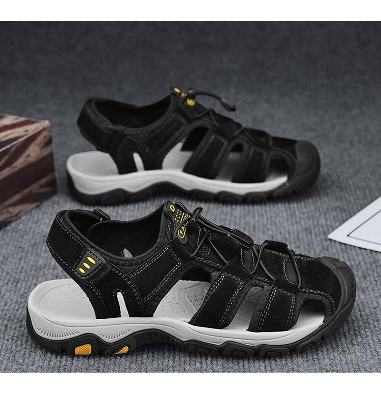 Sandalias de verano para hombre, transpirables, con puntera hueca, para todo tipo de combinaciones, deportivas de playa, de cuero, antideslizantes, de talla grande.