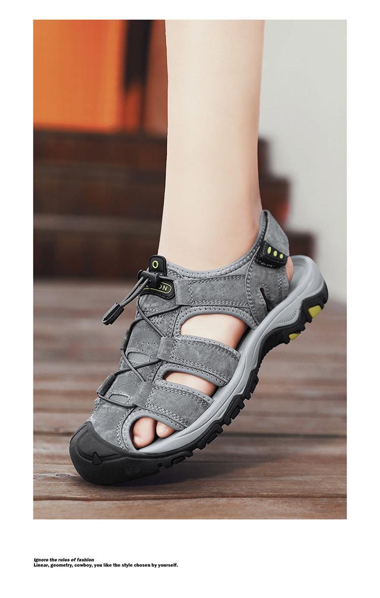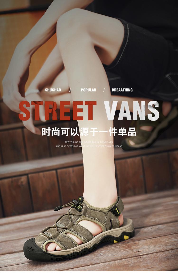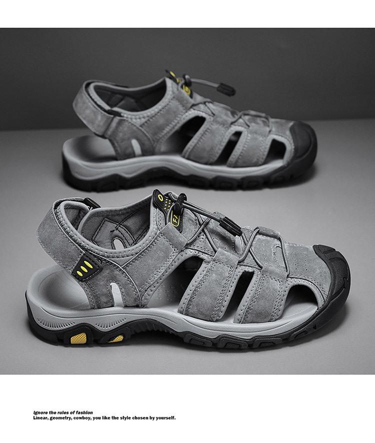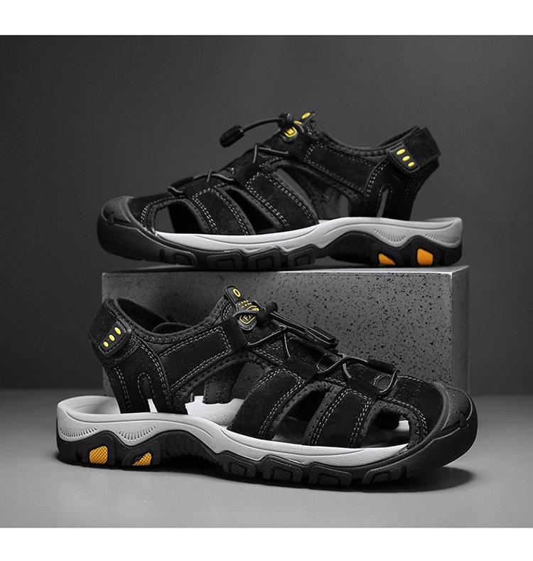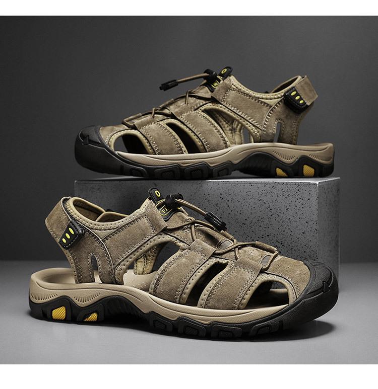 Sandalias de verano para hombre, transpirables, con puntera hueca, para todo tipo de combinaciones, deportivas de playa, de cuero, antideslizantes, de talla grande.