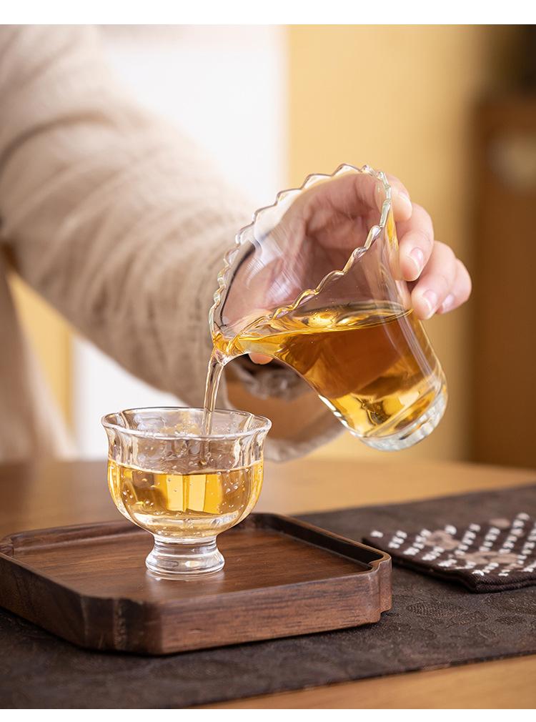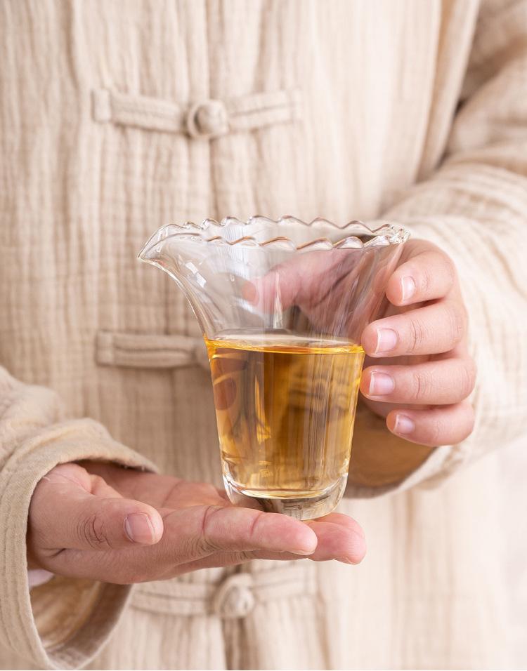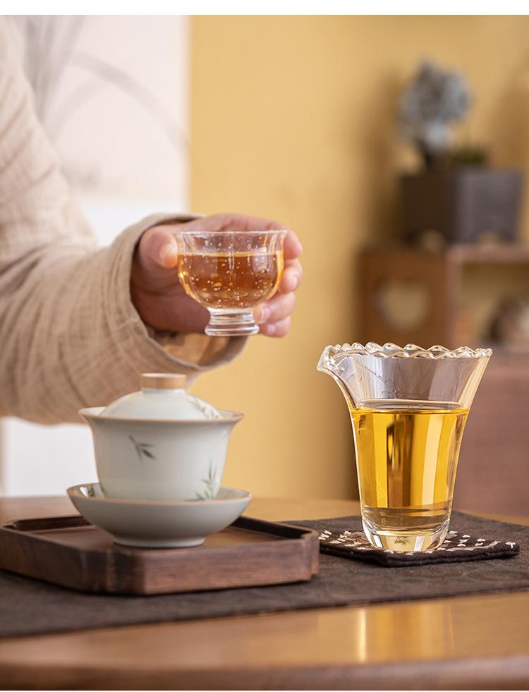 Taza de té de vidrio de borosilicato de alta calidad, taza de té de mar resistente a altas temperaturas, taza pública, dispensador de té de pequeña capacidad con boca de flor de garbanzo transparente