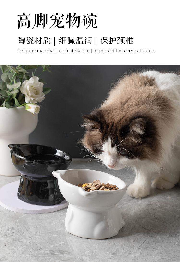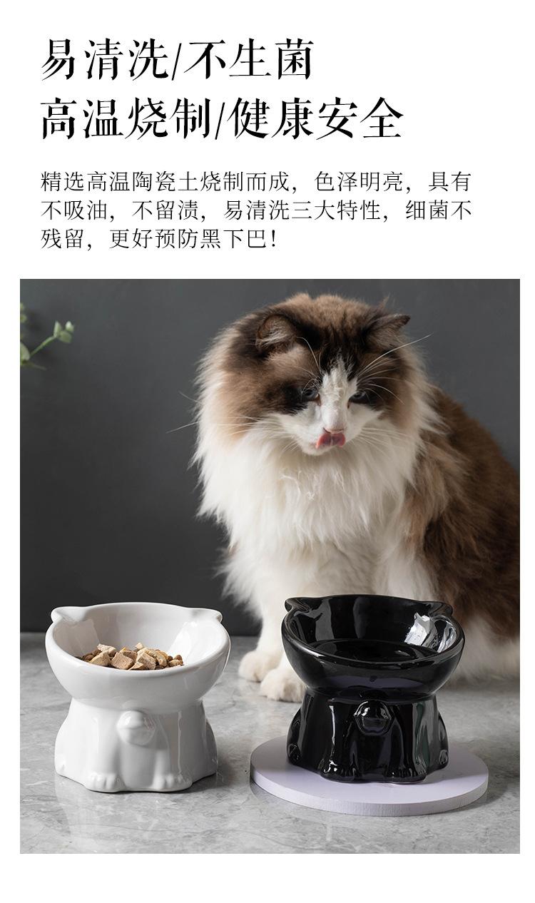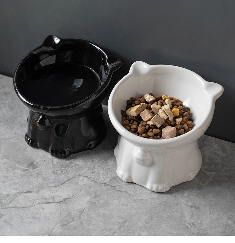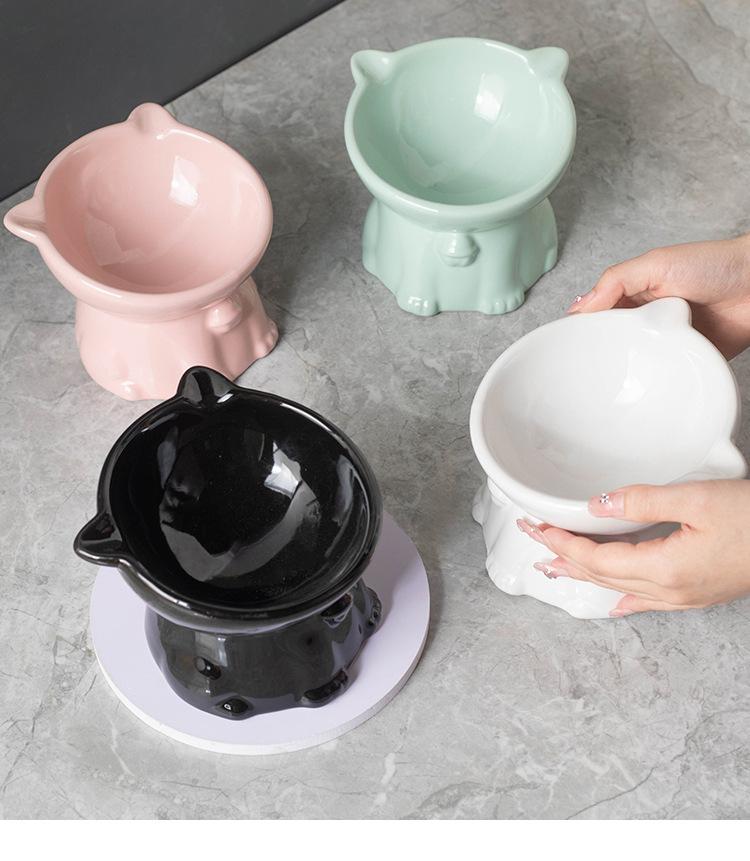 ¡Guau! Cuenco de cerámica personalizado para gatos, bonito y negro, alto, para beber agua, para perros, antidetonante.