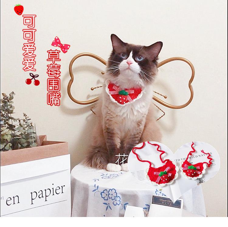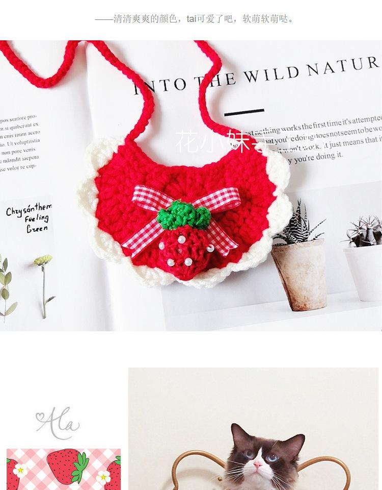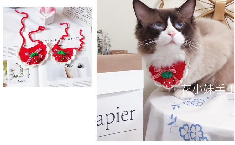 Oferta especial gato perro hecho a mano tejido babero de fresa perro lana toalla de saliva bufanda para mascota