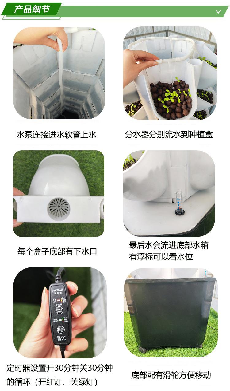 Caja de cultivo hidropónico sin suelo tipo columna, sistema de cultivo tridimensional en maceta para cultivo de frutas y verduras en invernadero.