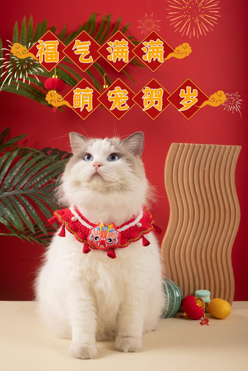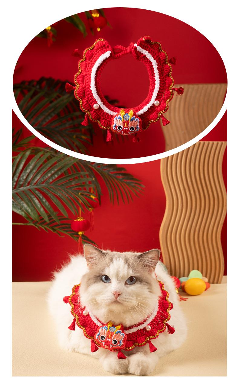 Collar festivo para mascotas, gatos y Año Nuevo, bufanda tejida con lazo ajustable para perro, ideal para el Festival de Primavera.