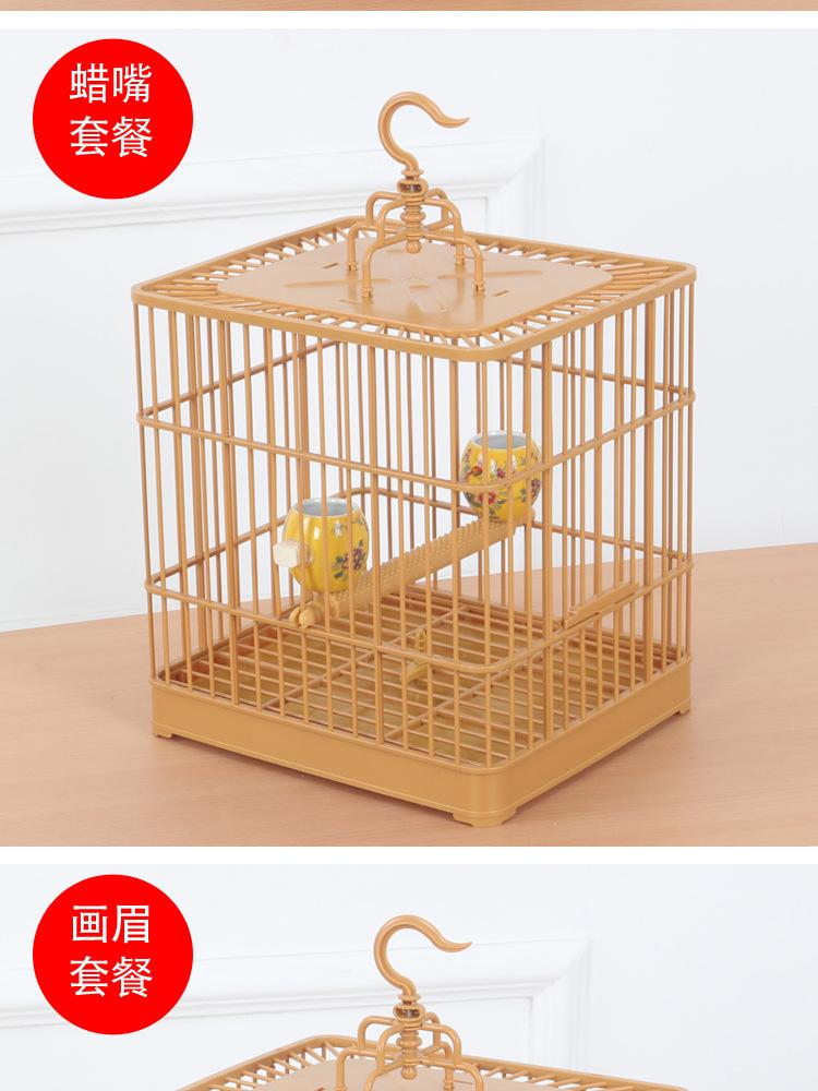 Jaula para pájaros Thrush, juego completo, jaula cuadrada de plástico, accesorios cuadrados para Birdhead, jaula especial para pájaros de baño grande de boutique.