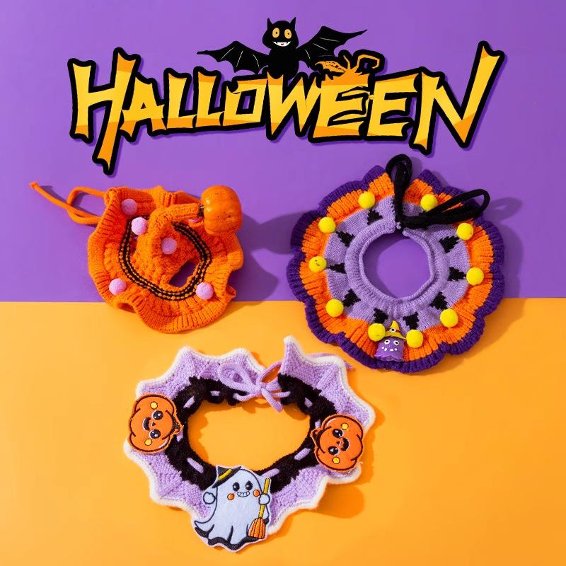 Nuevo Perro Calabaza Halloween Collar Tejido Gato Divertido Toalla Triangular Babero Mascota Toalla Antideslizante Anillo de Cuello para Gato