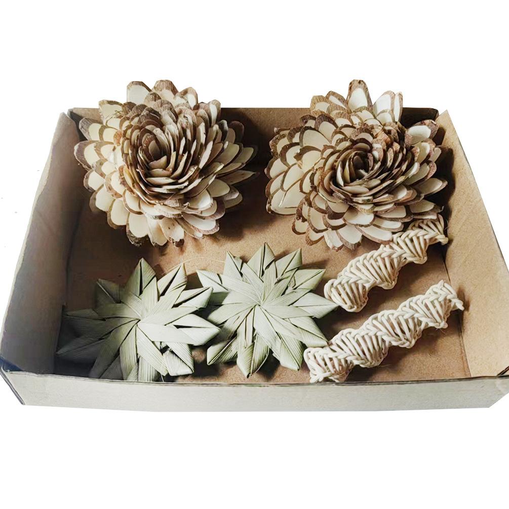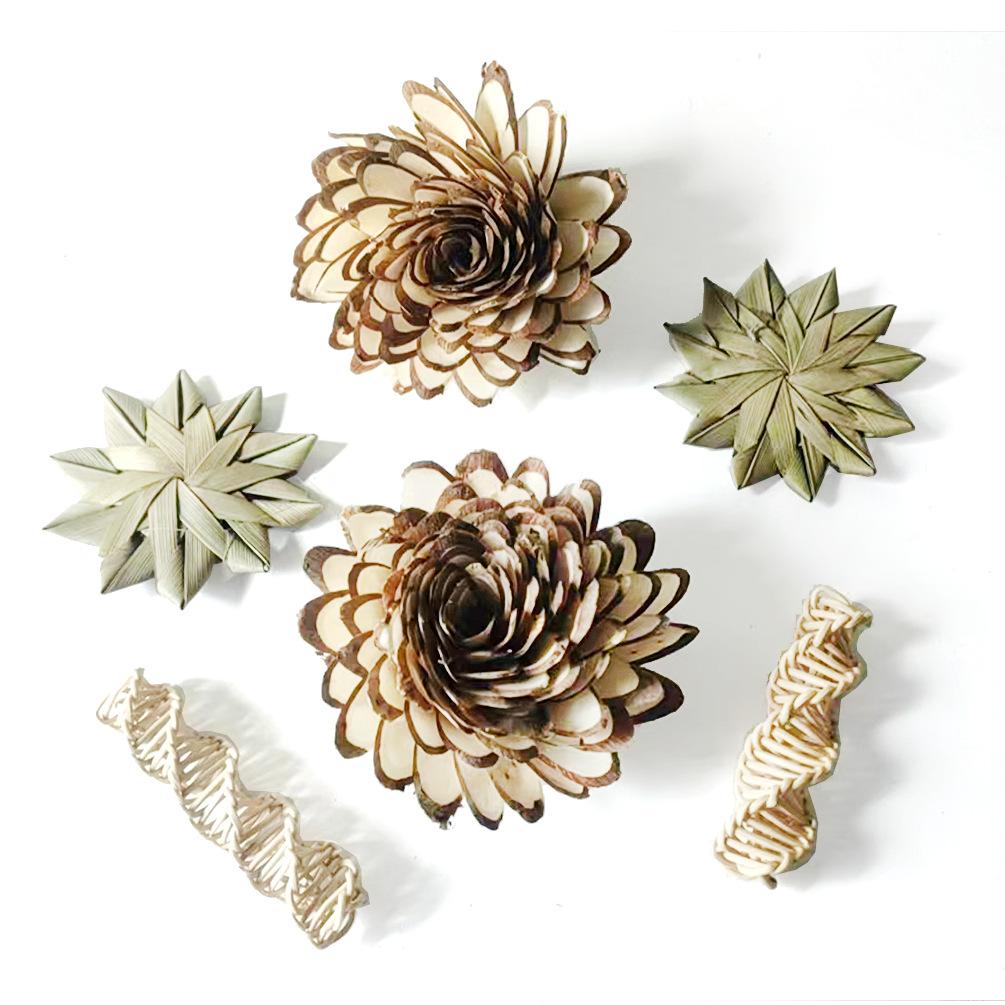 Juguete para loro de 6 piezas, hoja de palma natural, ratán, comestible, flor de felpa, productos para masticar, suministro directo de fábrica