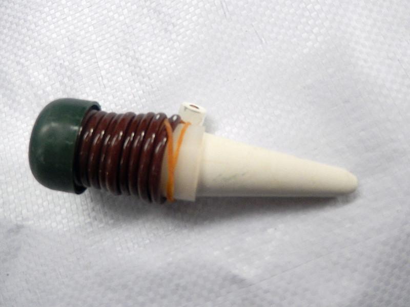 3. Llene el tubo de plástico rosa en el cuerpo principal del dispositivo de riego con agua, y también llene la tapa verde y el tubo de plástico con agua (puede ponerlo bajo el grifo para enjuagarlo y asegurarse de que el tubo de plástico esté lleno de agua). Instale la tapa verde del tubo nuevamente en el cuerpo principal del dispositivo de riego y presiónela firmemente.