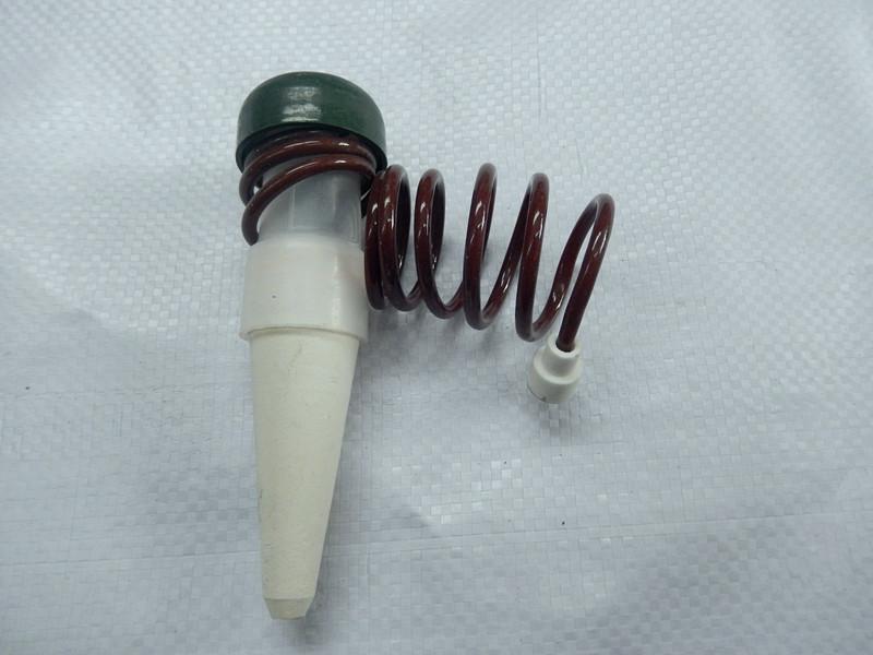 4. Coloque un extremo del tubo de plástico en un recipiente lleno de agua e inserte completamente la cabeza de porcelana blanca en el suelo.