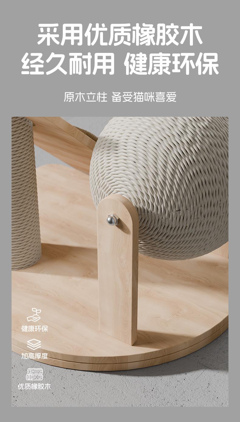 Rascador para gatos con cuerda de sisal pequeña, nido de madera maciza, juguete integrado resistente al desgaste, columna vertical para rascar.