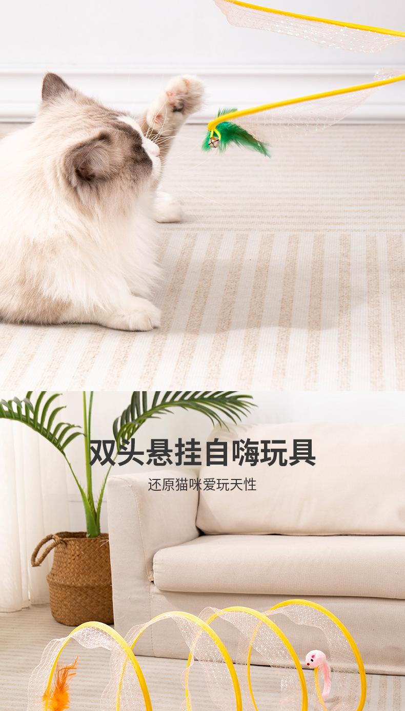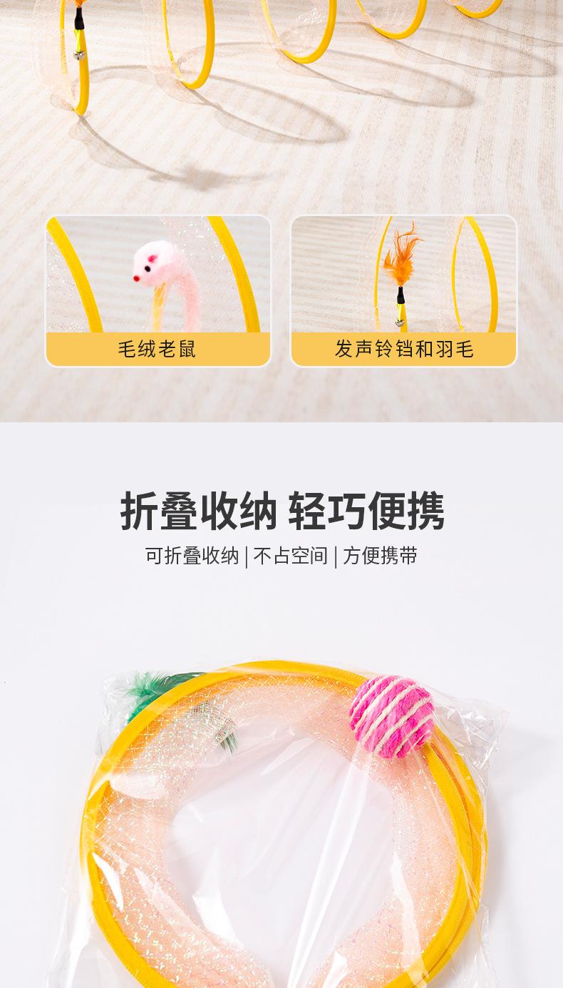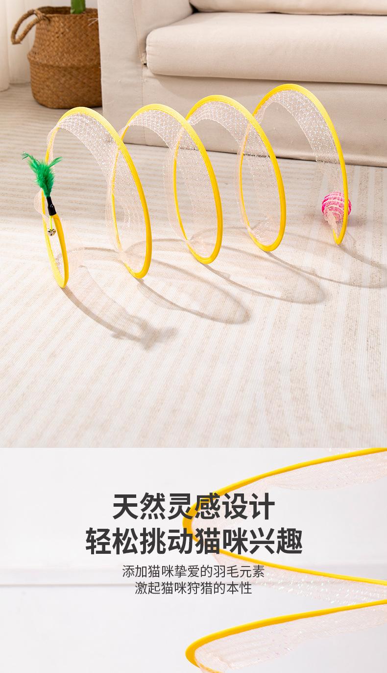 Túnel para gatos, juguete para mascotas, campana de ratón con plumas, divertido túnel elástico plegable para gatos.
