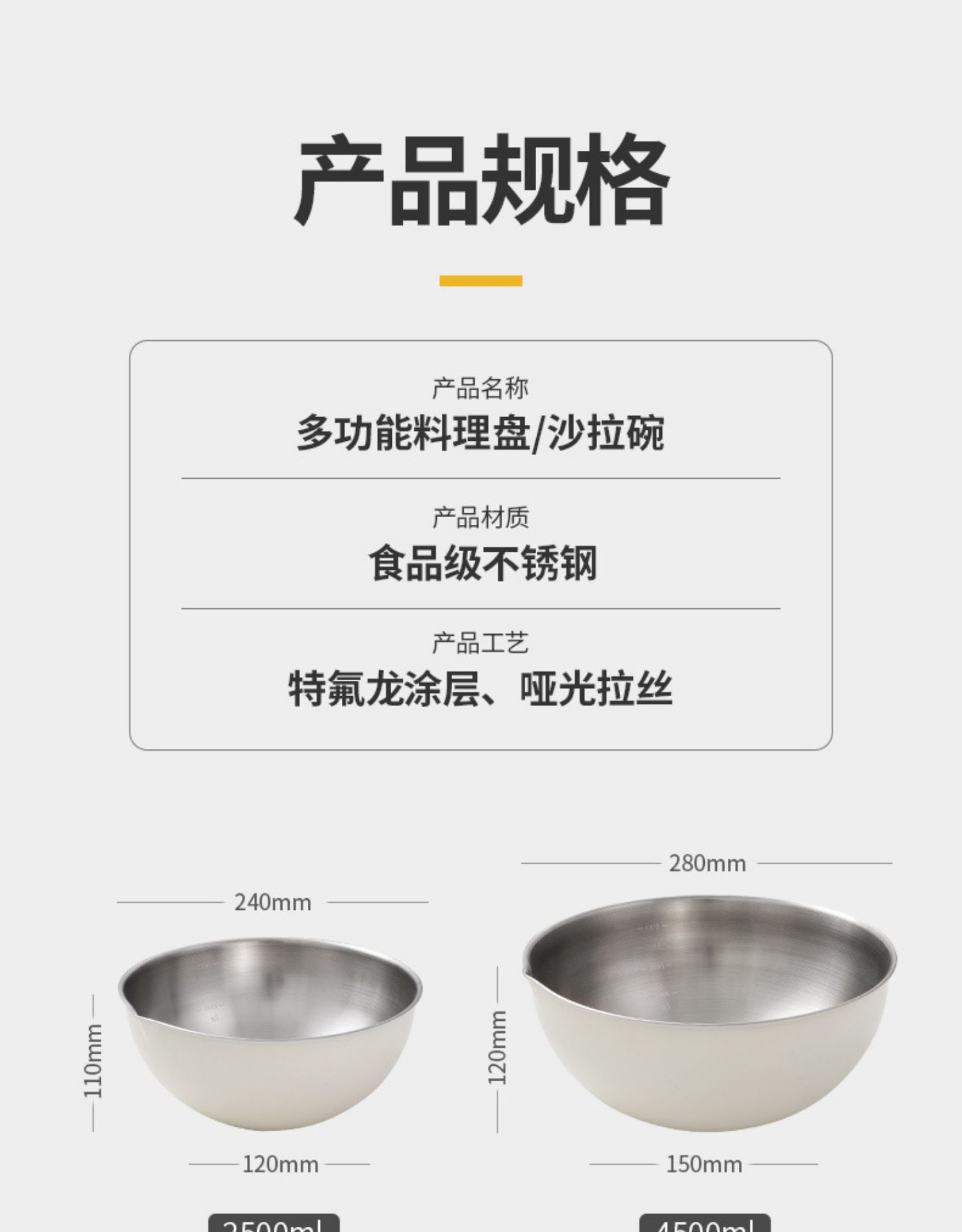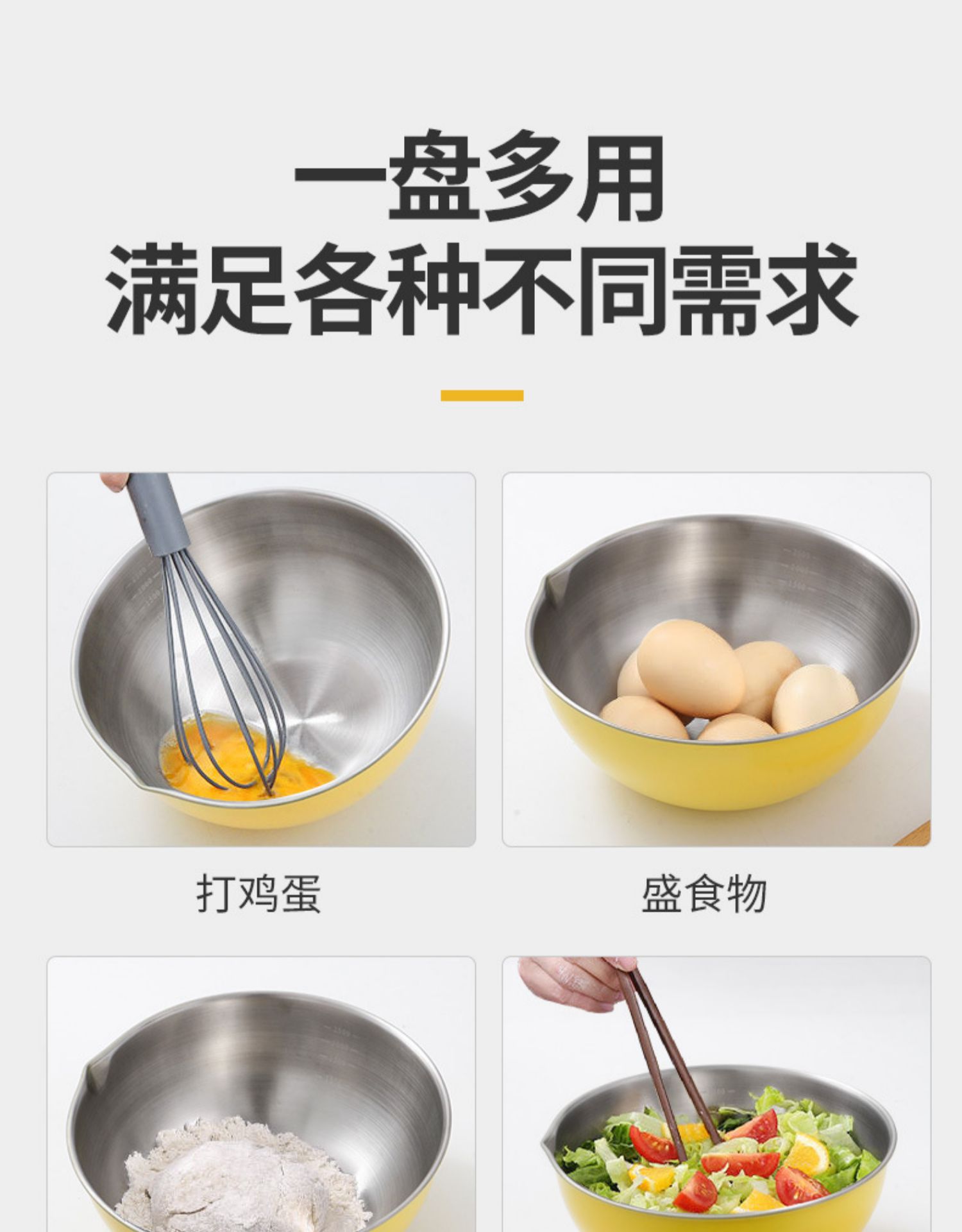 Cuenco para ensalada blanco de acero inoxidable a escala coreana, cuenco para mezclar, cuenco para hornear de cocina, cuenco para huevos, cuenco para cocinar ensalada, nuevo producto
