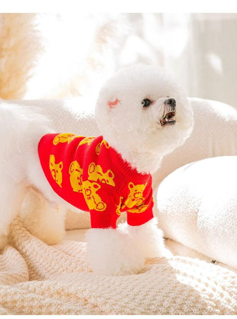 Suéter de otoño e invierno para perro, pareja de osos, Año Nuevo, ropa de peluche para mascotas de dos patas, para perros pequeños y medianos y gatos.