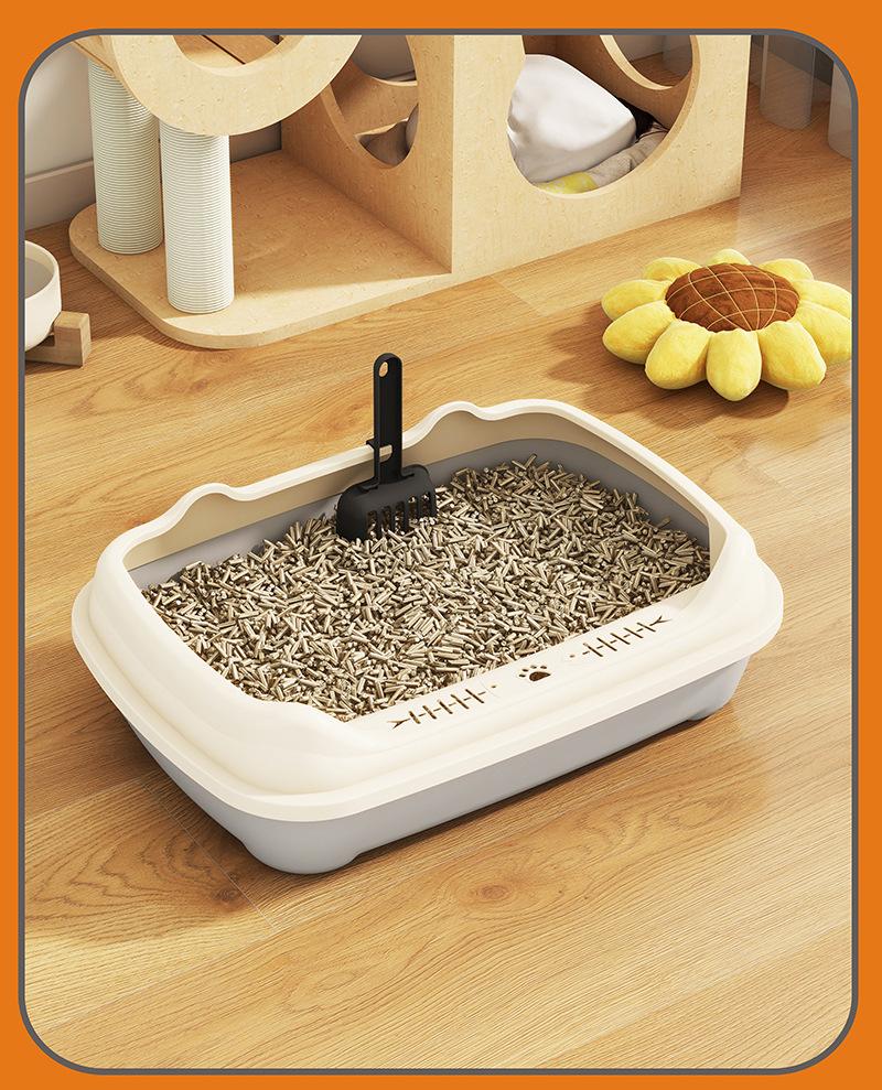 Caja de Arena para Gatos Extra Grande Abierta Inodoro para Gatos Adultos y Jóvenes Fabricante Mayorista de Suministros para Mascotas Actualización Anti-Salpicaduras