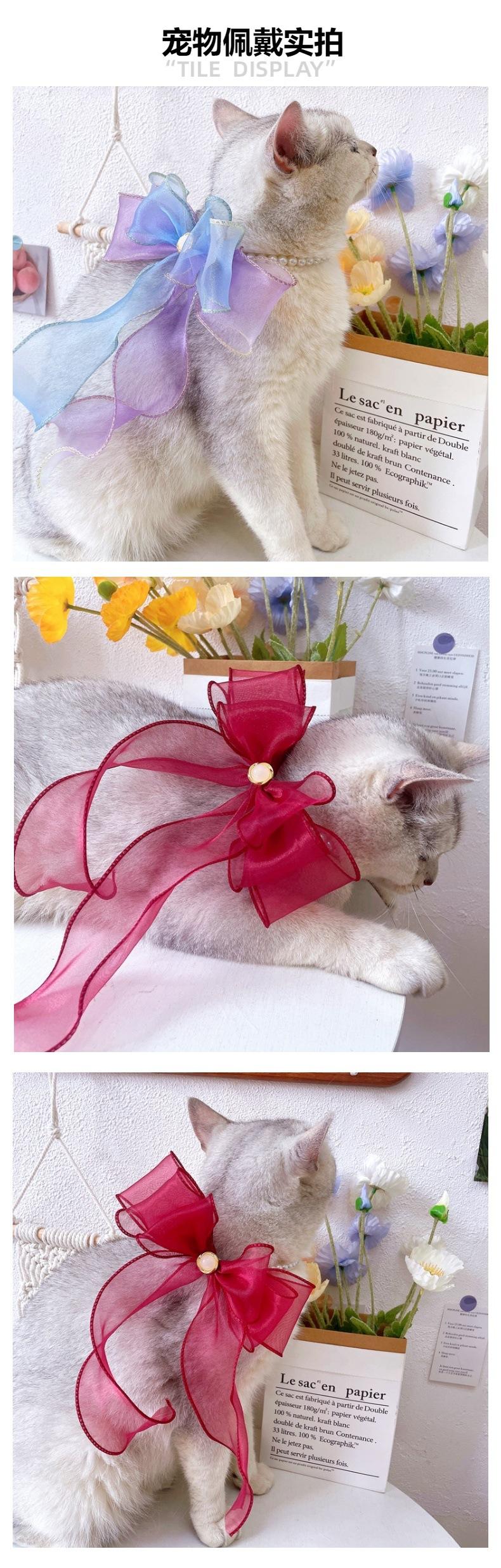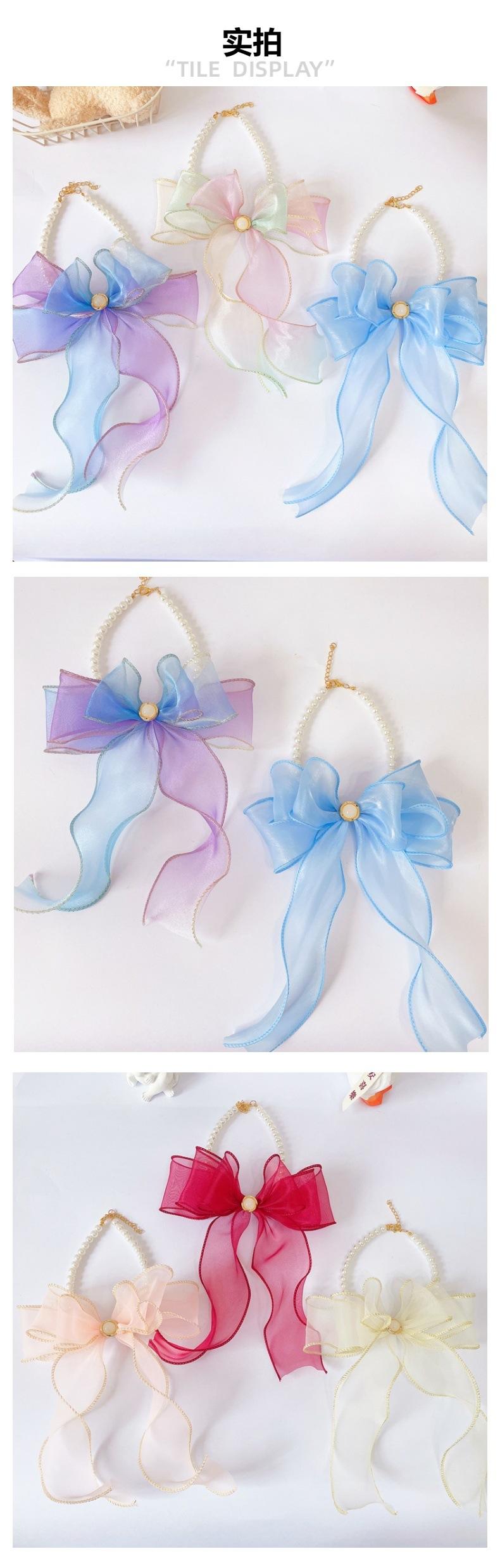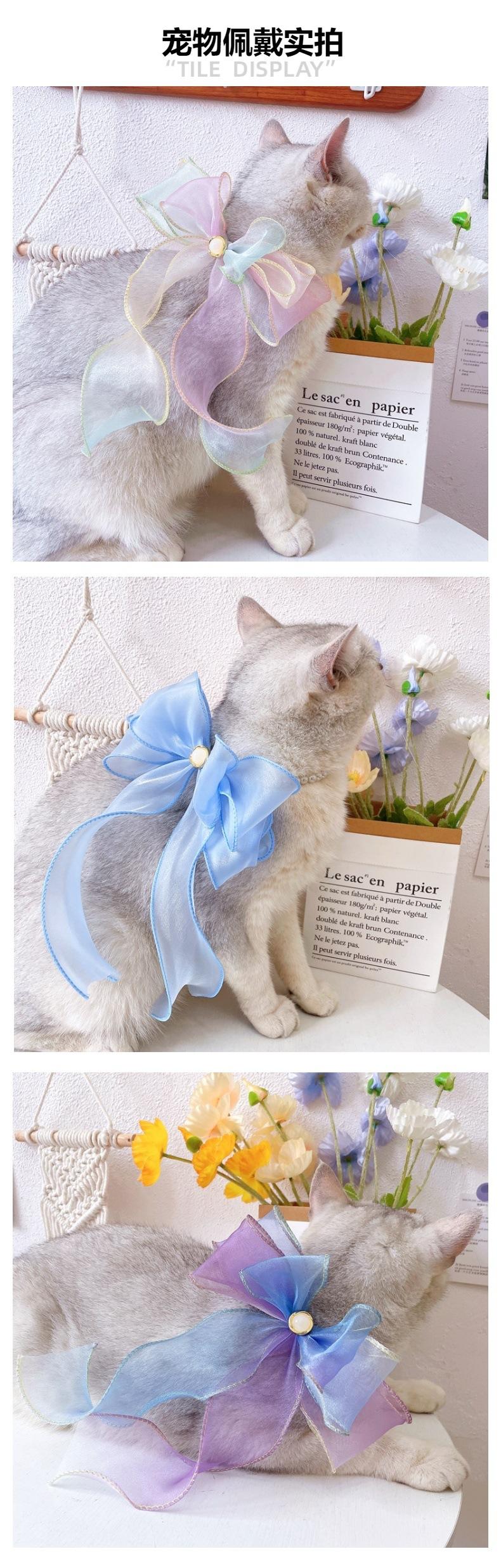 Gato Mascota Super Hada Gradiente Lazo Cinta Imitación Perla Collar Marioneta Gato Perro Regalo de Cumpleaños Joyería para Foto