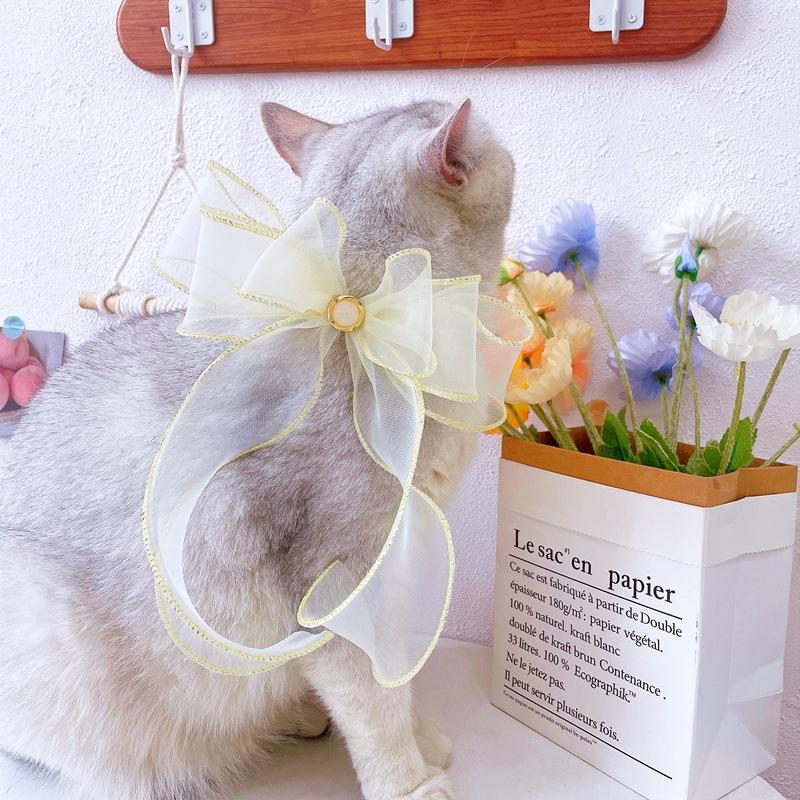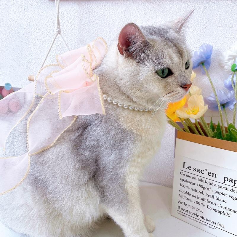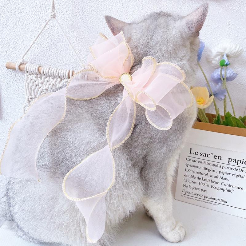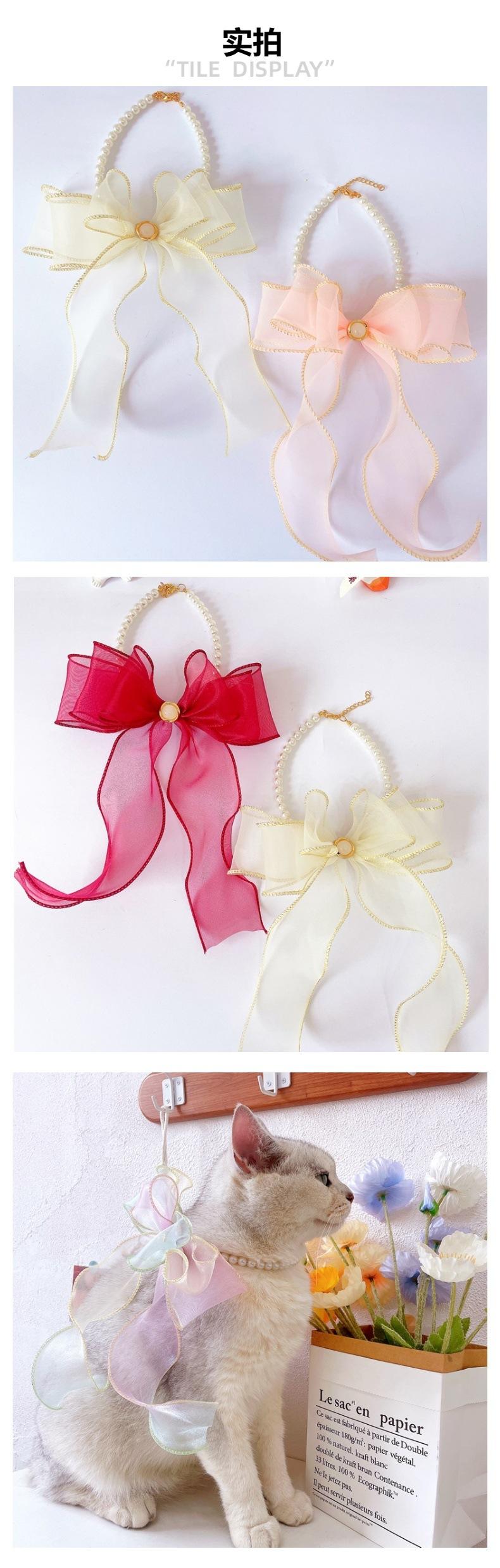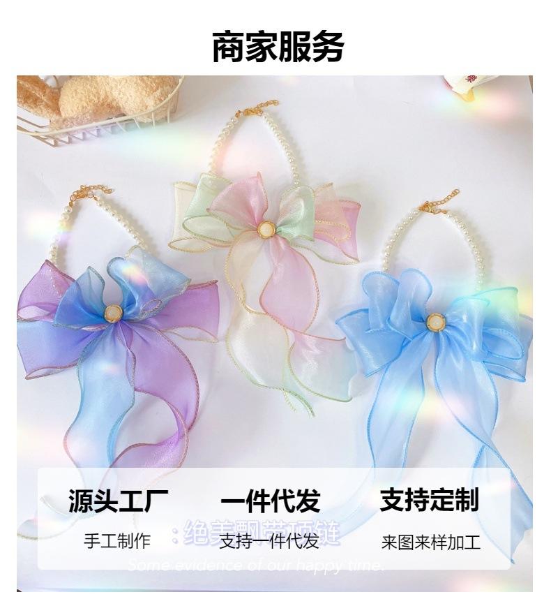 Gato Mascota Super Hada Gradiente Lazo Cinta Imitación Perla Collar Marioneta Gato Perro Regalo de Cumpleaños Joyería para Foto