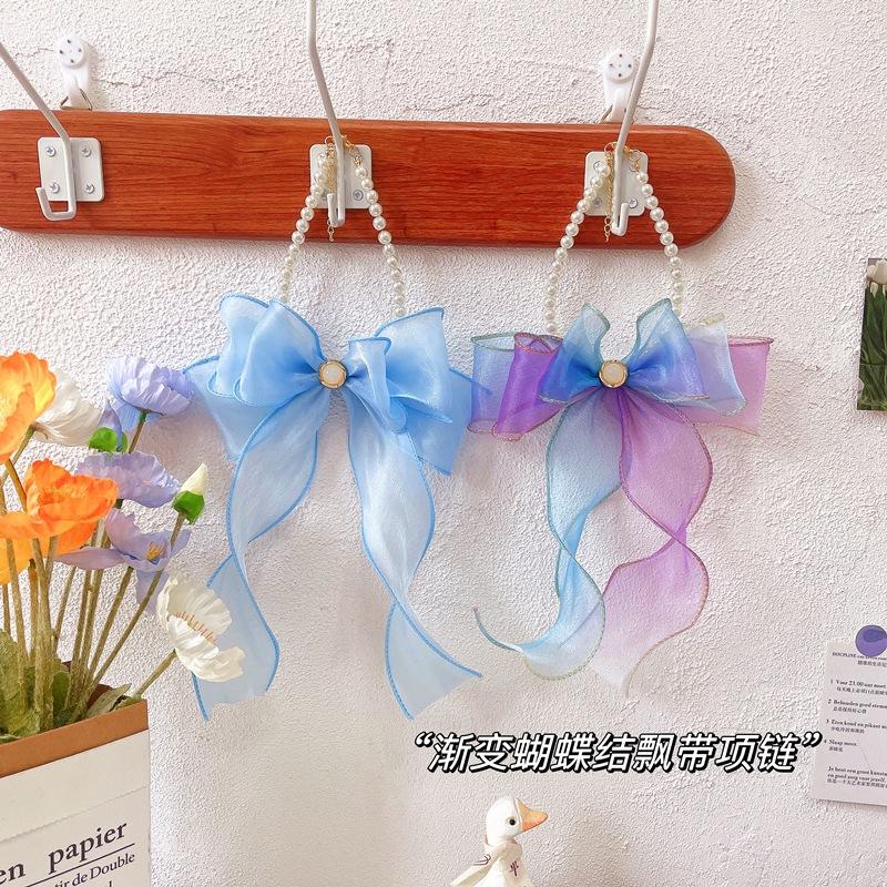 Gradient Blue and Purple Ribbon Necklace, Gradient Pink Green Strap Necklace, Blue ribbon necklace, wine red r...