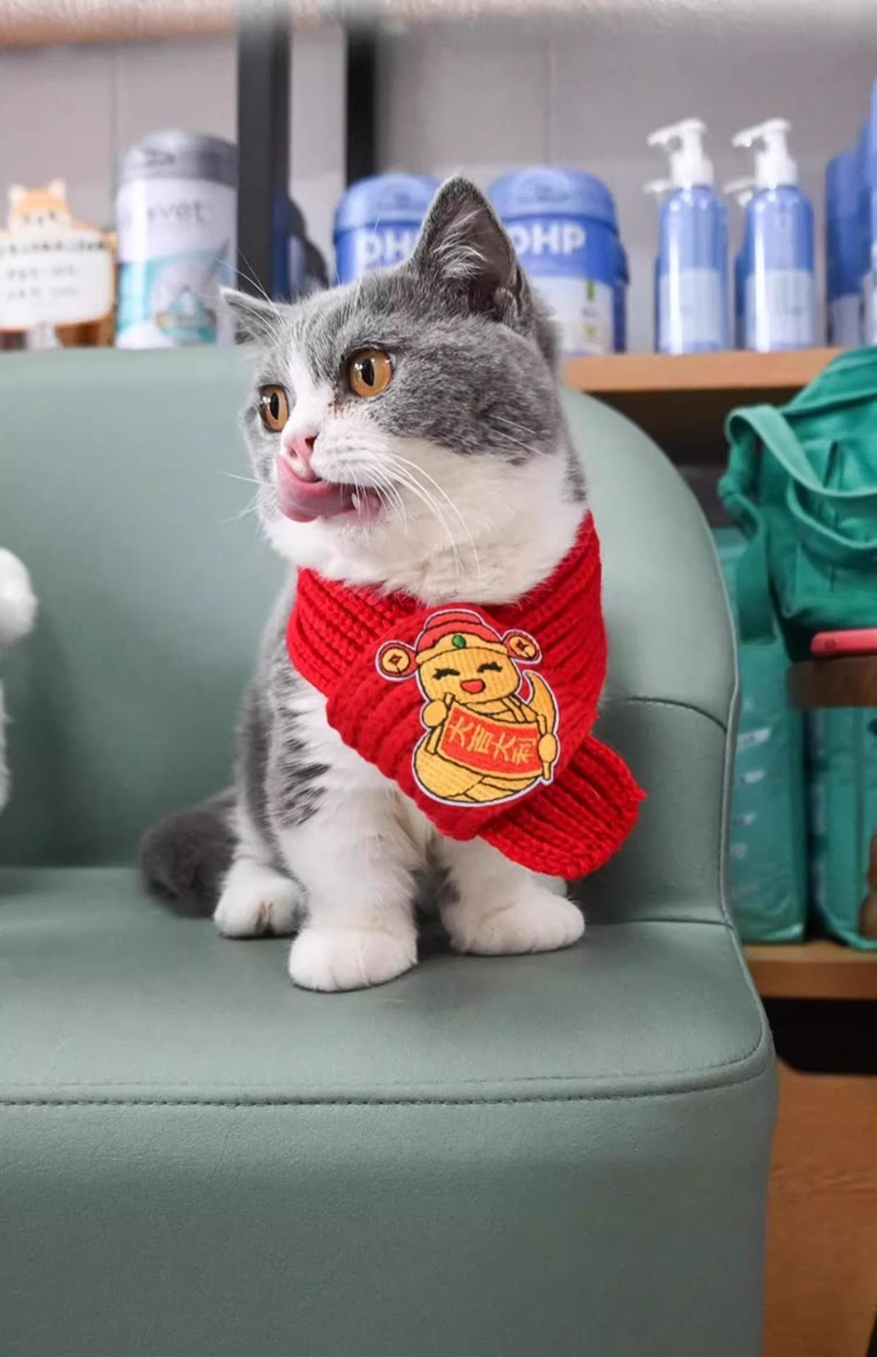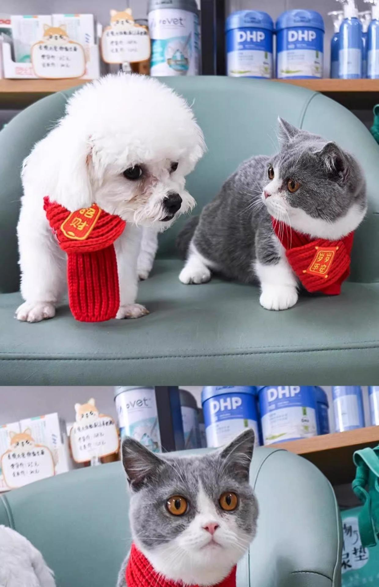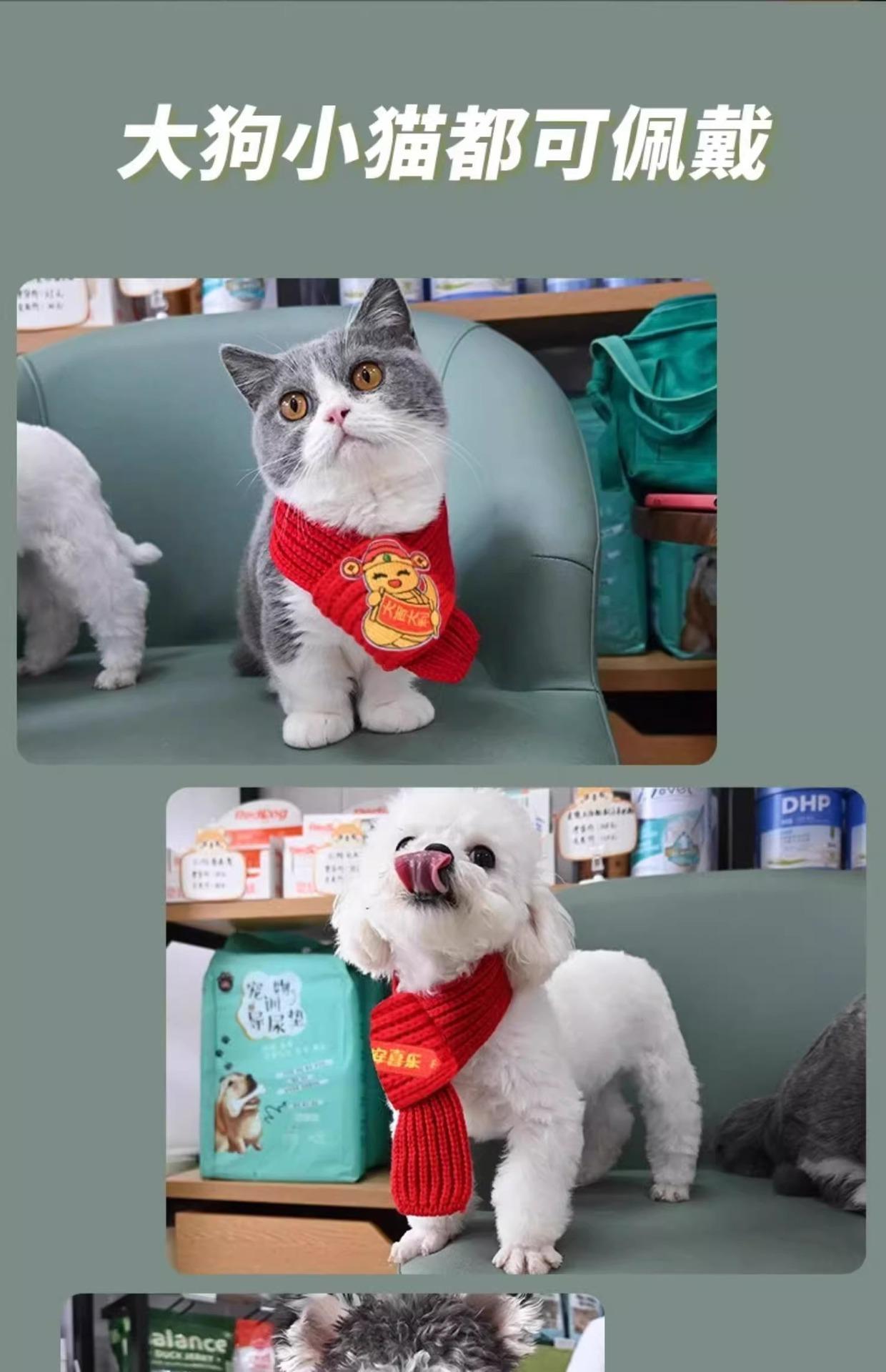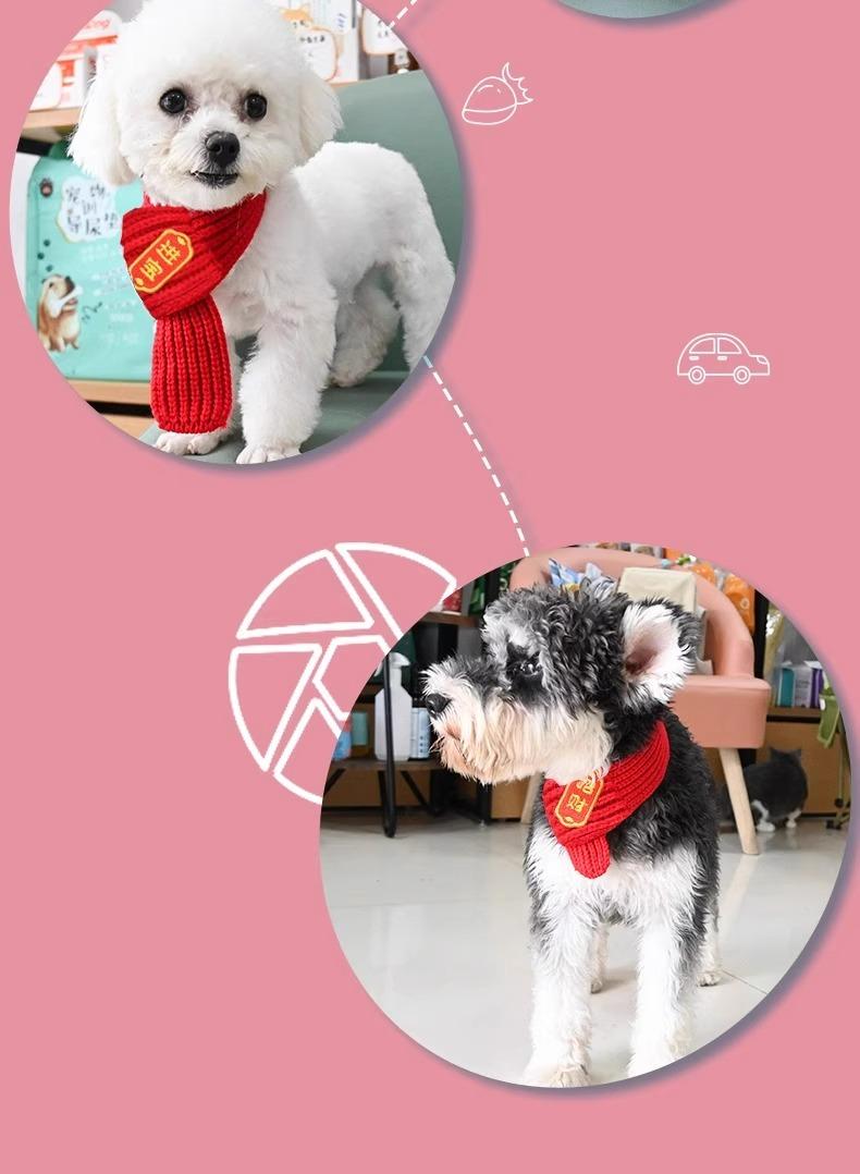 Bufanda para perro o gato, accesorio de Año Nuevo para mascotas, bufanda decorativa roja, linda bufanda navideña de punto cálido de lana