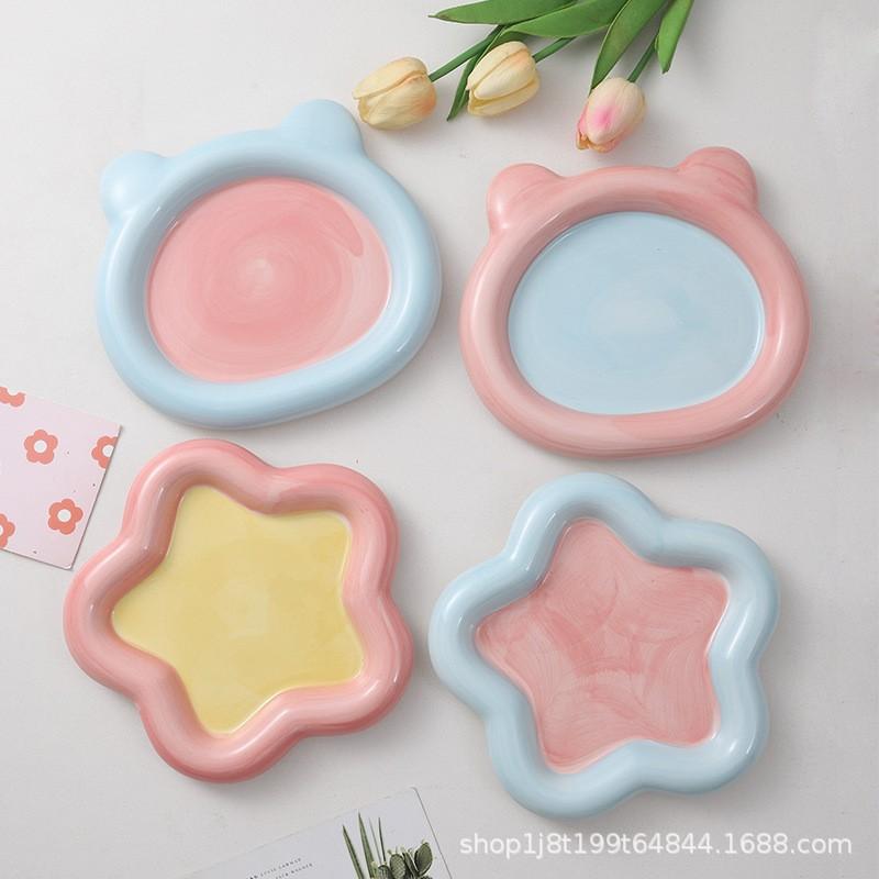Bear plate blue and pink, Bear plate yellow powder, Star plate blue and pink, Star plate pink and yellow, Disc...