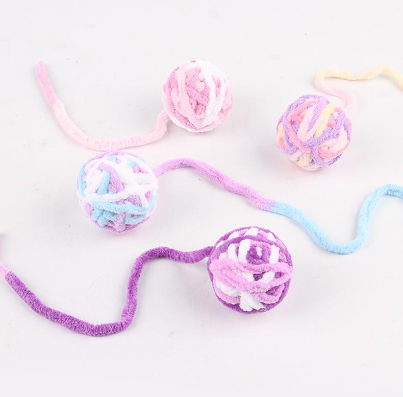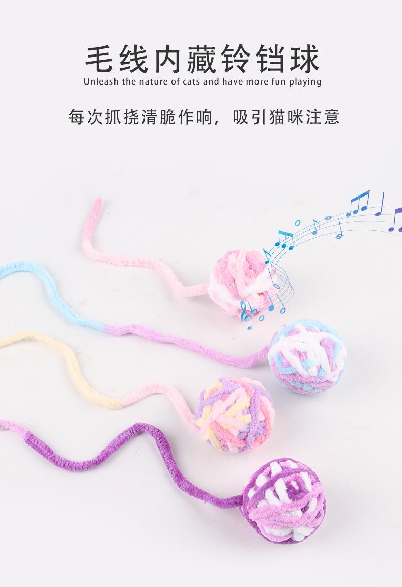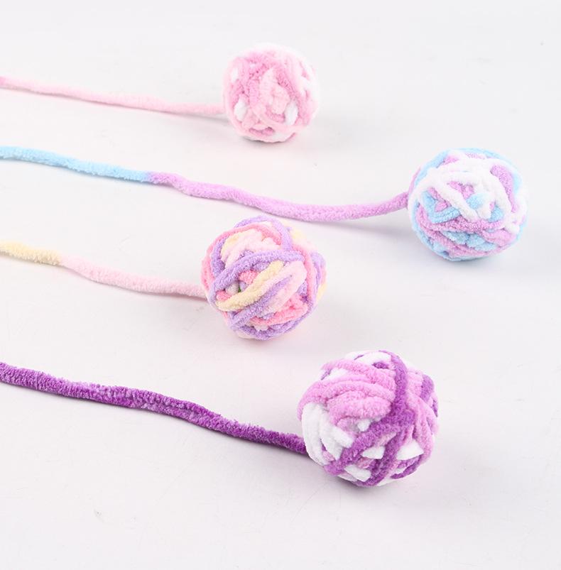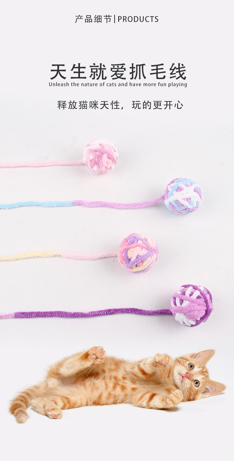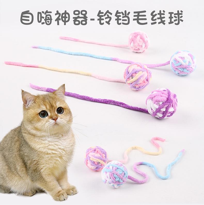 Juguete para mascotas de Amazon, juguete para gatos con mordida de autoalivio, divertido juguete para gatos, bola de cola con sonido, bola de lana gruesa de color.