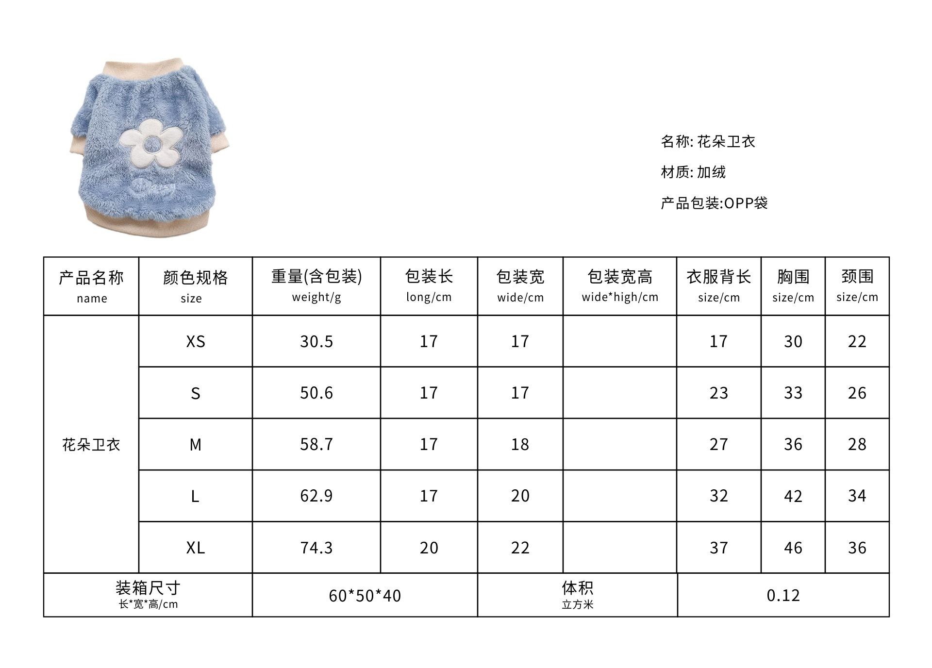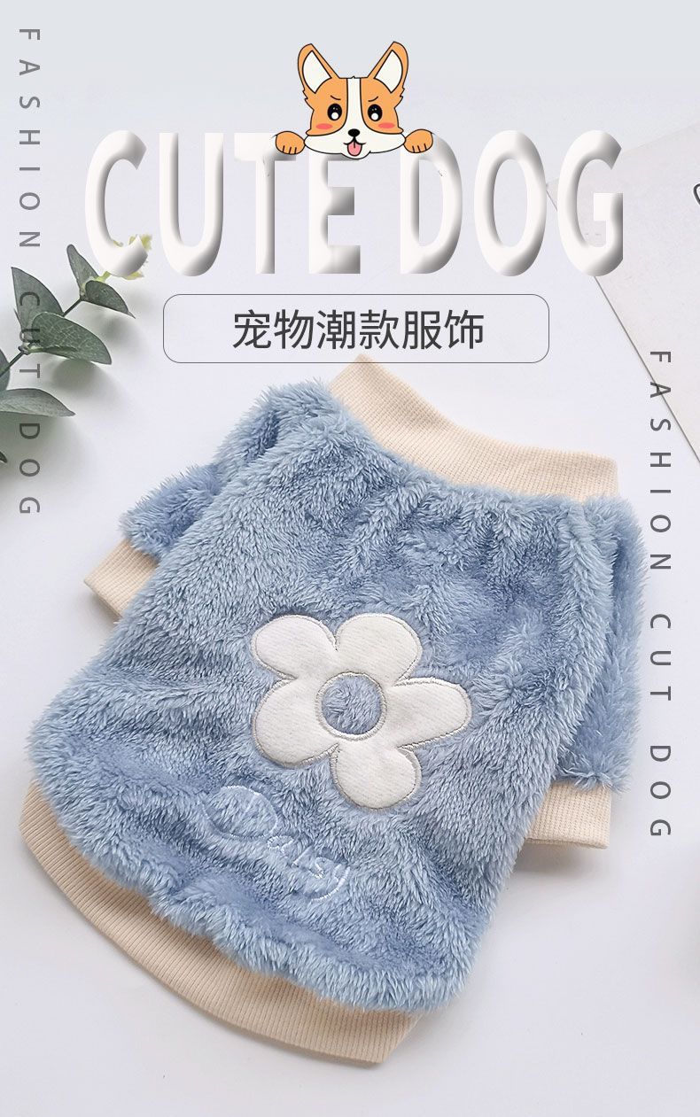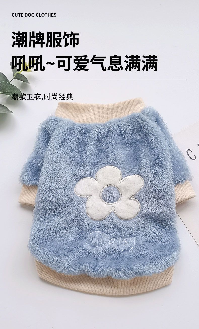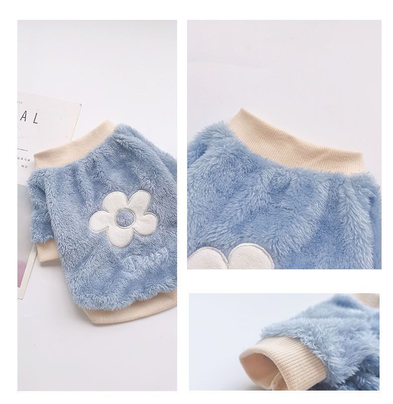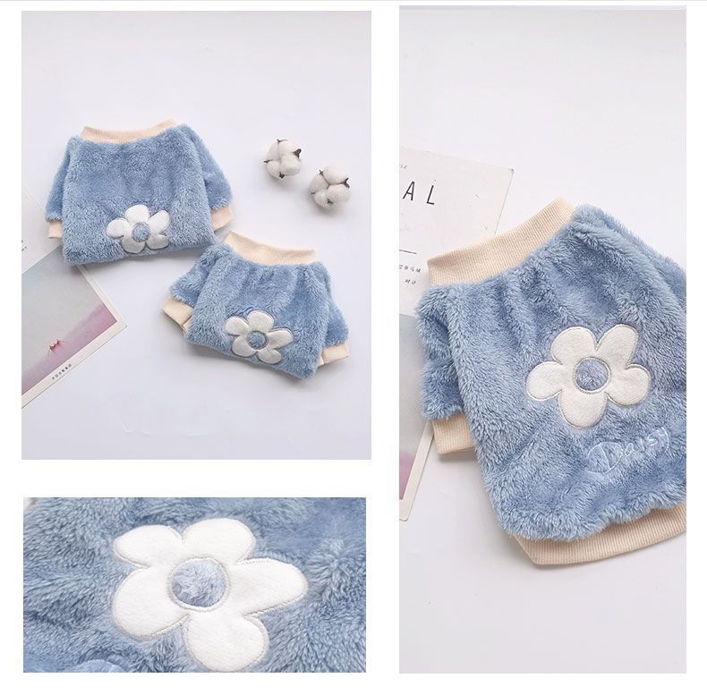 Ropa para perros Otoño e Invierno Sudadera cálida con forro polar y flores Oso de peluche Bome Ropa para perros pequeños y gatos